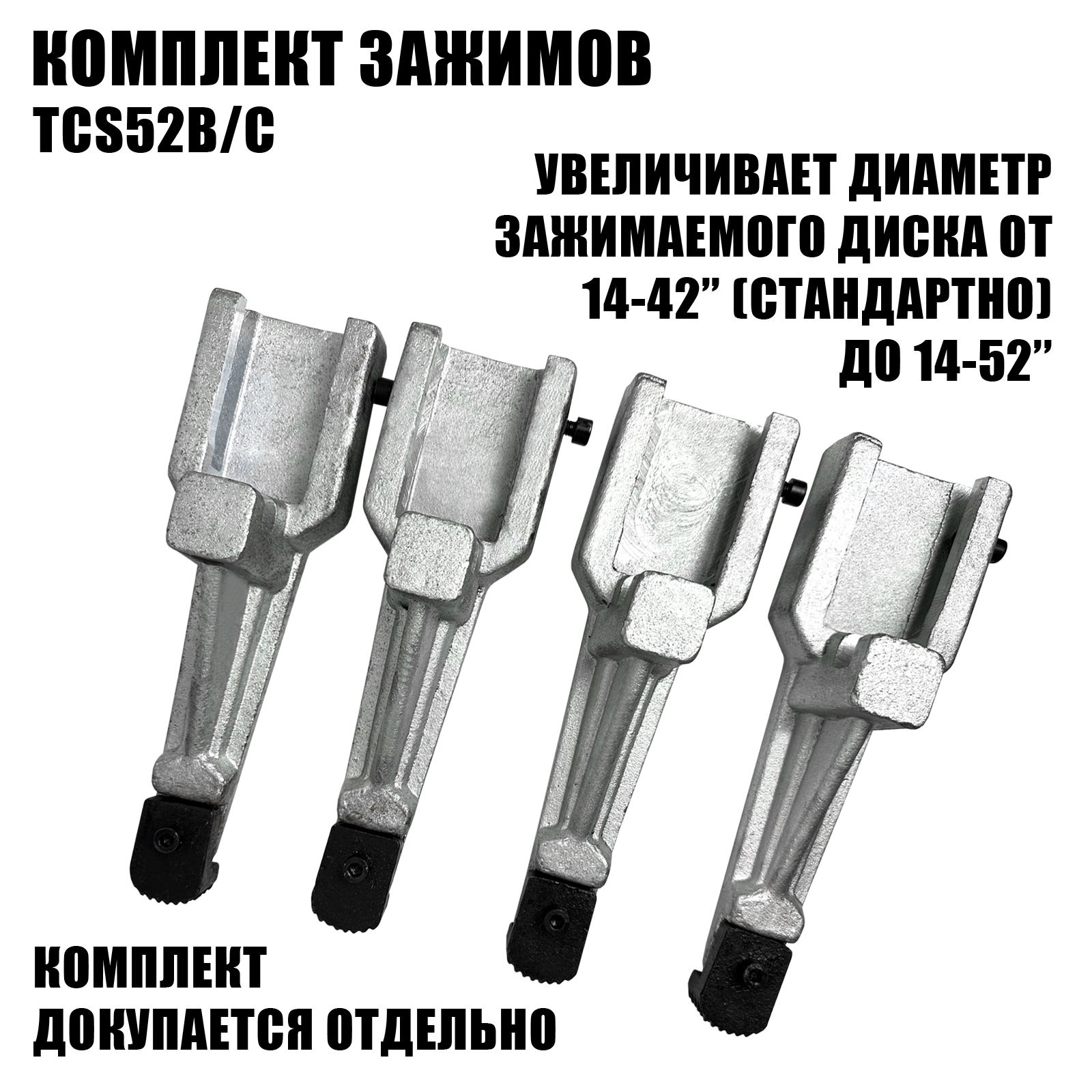 - Вы можете также приобрести комплект зажимов, чтобы увеличить диаметр зажимаемого диска от 14-42'' (стандартно) до 14-52''.