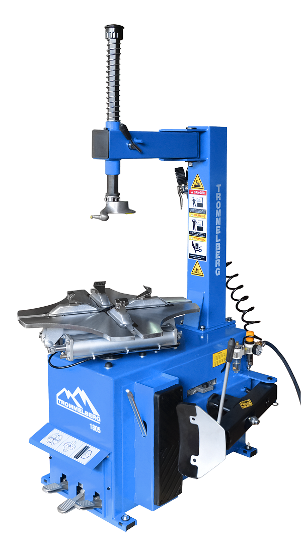 Полуавтоматический шиномонтажный станок Trommelberg 1805B для обслуживания колес со стальными / алюминиевыми дисками наиболее распространённых диаметров.