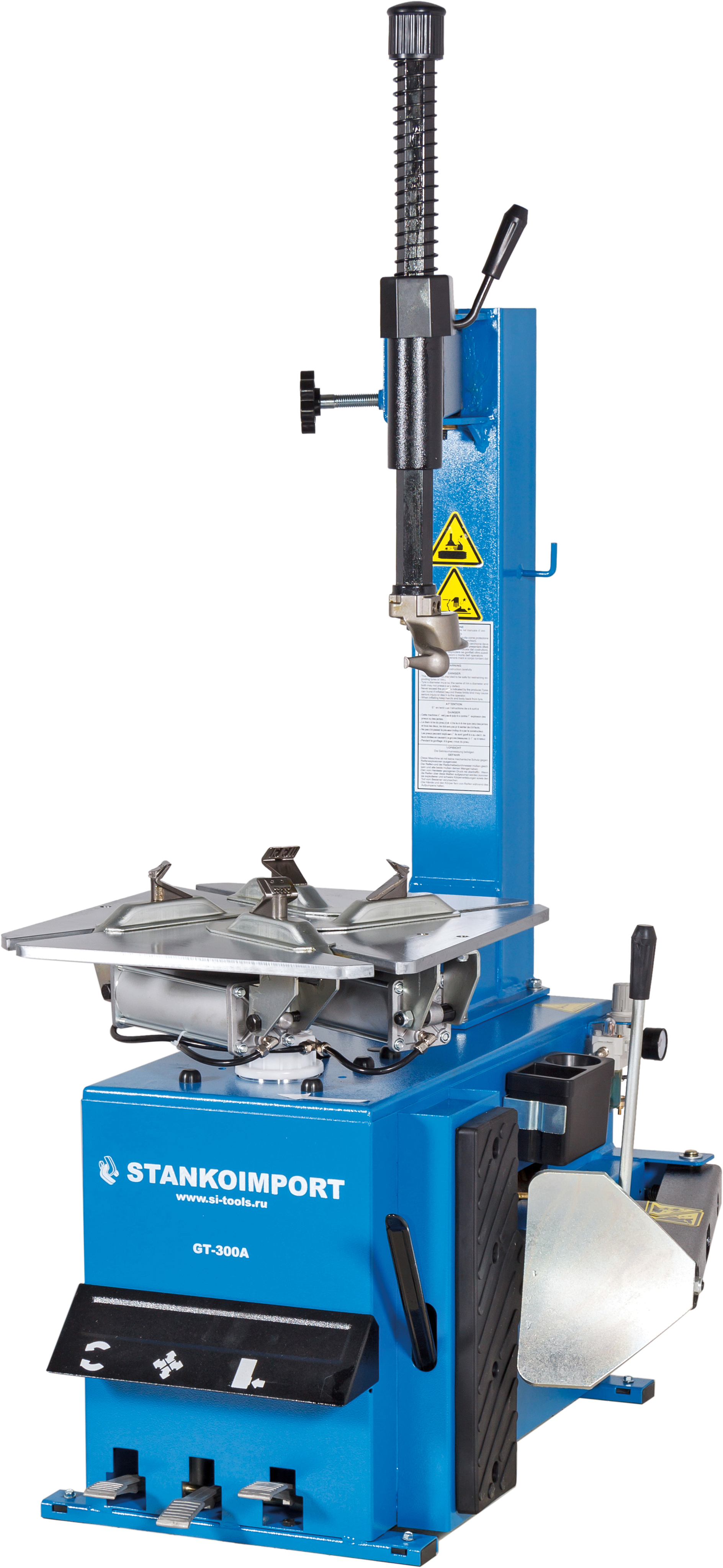 Назначение: Шиномонтажный полуавтоматический станок «Станкоимпорт» GT-300А 220В — это оборудование для проведения работ по монтажу и демонтажу покрышек на колесные диски диаметром от 10" до 24". Используют на станциях технического обслуживания и шиномонтажных постах. Описание: Полуавтоматический шиномонтажный станок «Станкоимпорт» GT-300А 220В предназначен для обслуживания стандартных, низкопрофильных, камерных и бескамерных шин легкового и легкого грузового транспорта на стальных и алюминиевых дисках. Для разбортирования колеса предусмотрена отжимная лапа, которая управляется пневматикой. Движение стола осуществляется электрическим двигателем. Колесо на нем фиксируется прижимными кулачками. Отведение монтажной головки (пальца) мастер производит вручную. Предусмотрено ножное управление станком. Для удобства оператора на переднюю крышку педалей нанесены условные обозначения. Стенд оснащен такими педалями: вращения поворотного стола (по часовой стрелке и против), зажима и отжима кулачков (раскрывает и закрывает 4 кулачка на столе; при отпускании педали кулачки останавливаются), отжимной лопаты (поворачивает отжимную лопату по направлению к корпусу стенда и возвращает ее в исходное положение). Шиномонтажный станок имеет небольшой вес (нетто: 185 кг) и транспортировочные габариты (960х760х900 мм) для такого вида оборудования. Отличный выбор для мастерской с ограниченной площадью. Особенности: Имеет ассиметричное расположение кулачков (по диагонали) Можно доукомплектовать взрывной подкачкой (пневмопушкой) Создает низкий уровень производственного шума: до 75 дБ Комплектация: монтировка для демонтажа шины с диска; накладки на монтажную головку; пластиковые накладки на кулачки стола. Советы по эксплуатации Шиномонтажный станок «Станкоимпорт» GT-300А 220В транспортируют в оригинальной картонной упаковке на паллете. Разгрузка стенда должна осуществляться вилочным погрузчиком соответствующей грузоподъемности. Для безопасного и комфортного управления стенд следует монтировать согласно требованиям инструкции в просторном, хорошо освещенном месте только на ровный и чистый пол с соблюдением рекомендуемых габаритов рабочей зоны. Для повышенной устойчивости и безопасности персонала станок крепят к полу анкерными болтами. Все работы по подключению электрических и пневматических соединений должны выполняться исключительно квалифицированным электриком. Внимание! Используйте шиномонтажный стенд только по его прямому назначению. Перед началом работ убедитесь, что предприняты все меры по соблюдению правил техники безопасности. Требования к обслуживанию Перед началом работы проверяйте общее состояние станка на безопасность: отсутствие ослабленных винтов, поломок, повреждений на электрических проводах и шлангах, правильное расположение ремней, соединяющих подвижные части. Не реже 1 раза в неделю промывайте рабочий стол очистителем или негорючим растворителем. Смазывайте направляющие кулачков....