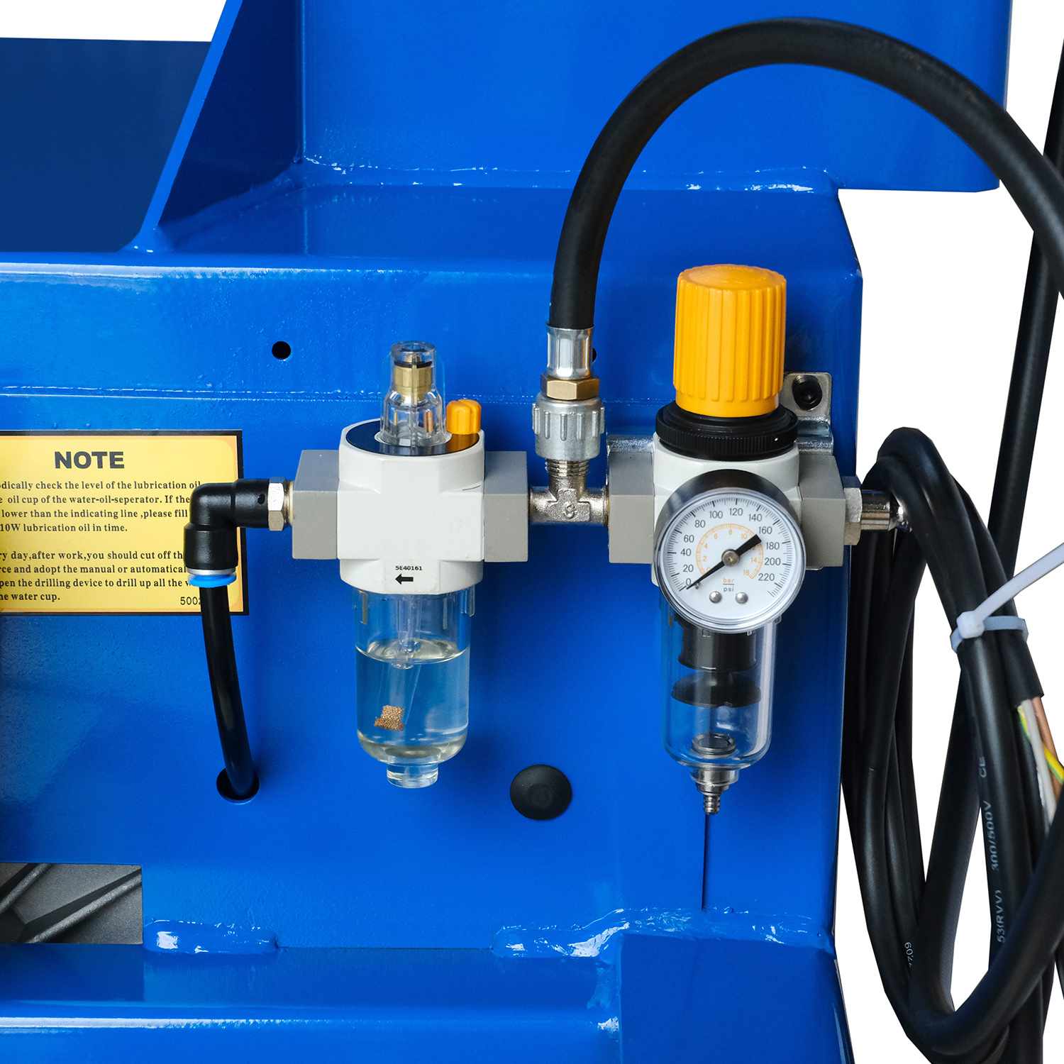 Оснащение блоком подготовки воздуха, включающим регулятор давления, масловлагоотделитель и лубрикатор, позволяет поддерживать оптимальные условия для работы, что продлевает срок службы оборудования.