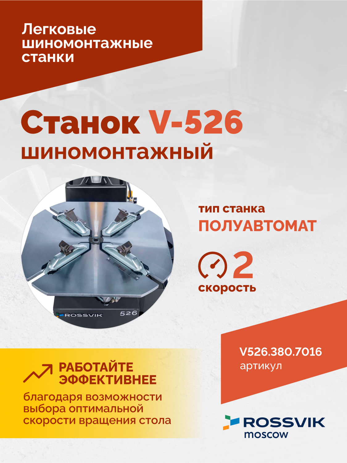 Станок шиномонтажный ROSSVIK V-526 2sp, п/автомат, до 26", 380В Цвет серый RA7016