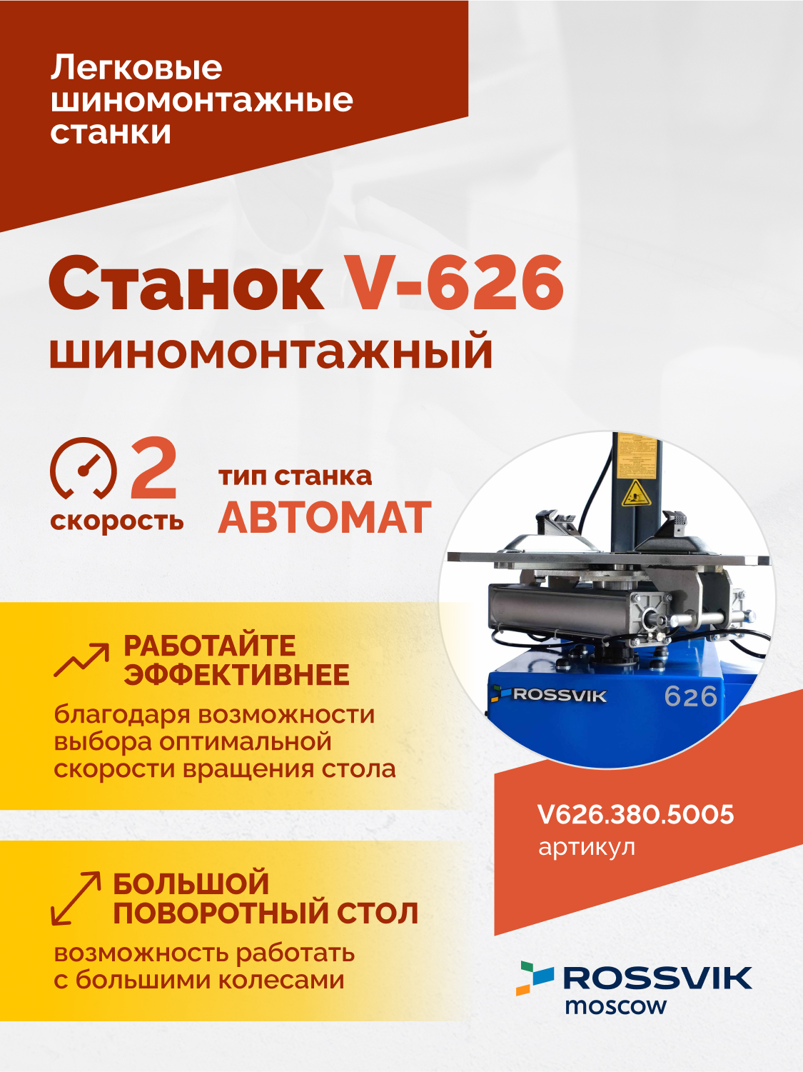 Гарантия на шиномонтажные станки ROSSVIK – 2 года, что подтверждает высокое качество и надежность оборудования.