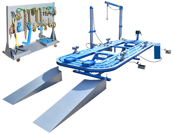 Платформенный стапель* с полным гидравлическим подъемником для восстановления геометрии кузова автомобилей, имеющих повреждения любой сложности.