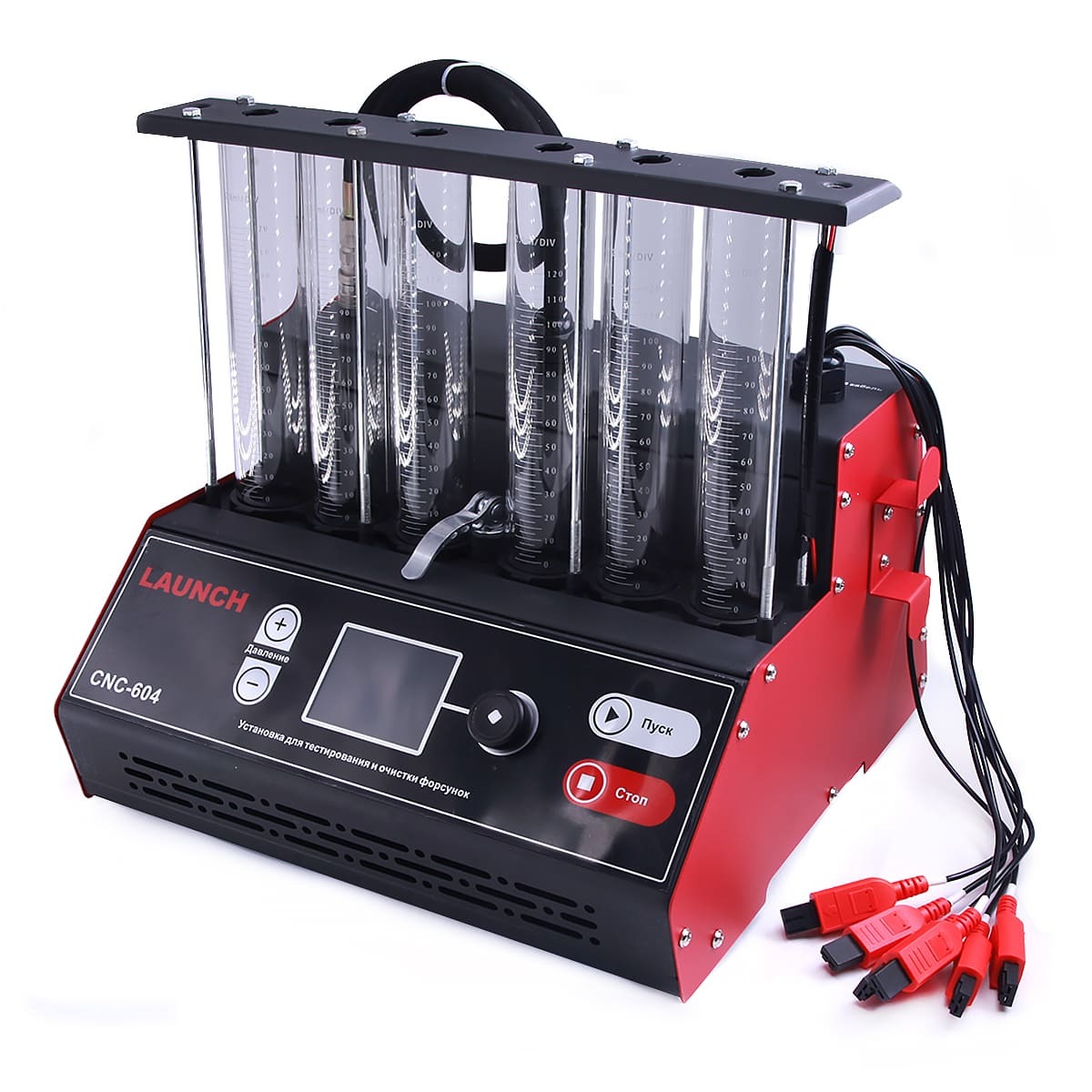 Launch CNC-604 — облегченная версия стенда для тестирования и ультразвуковой очистки форсунок CNC-603A. Отличительной чертой CNC-604 являются малые габариты, отдельно стоящая ультразвуковая ванна и ручной слив жидкости. По режимам работы и комплекту адаптеров, стенд идентичен 603A.