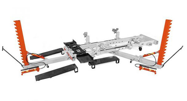 Рихтовочный стапель рамного типа грузоподъёмностью 2 т, с двумя подкатными силовыми устройствами векторного типа с max усилием 10 т. Особенности Основа стенда для правки кузовов - жёсткая рама с синхронно поворачиваемыми рычагами для закрепления кузова автомобилей и оригинальной системой закатки автомобиля. Стенд комплектуется 2-х и 3-х шарнирными силовыми устройствами с усилием растяжения до 10 т, 28 вариантов установки силовых устройств по периметру рамы. Комплект поставки: Рама в сборе 1 шт. Силовое устройство 2 шт. Комплект гидрорастяжки 2 шт. Зажимы 4 шт. Трапы 2 шт. Комплект оснастки 1. Ящик JTC Metal box - 1 шт. 2. Цепь JTC-8Р107 – 1 шт. 3. Фиксатор JTC-C903 – 1 шт. 4. Зажим JTC-C101 – 1 шт 5. Зажим JTC-С102NN – 1 шт. 6. Зажим JTC-С302 – 1 шт. 7. Зажим JTC-С601N – 1 шт. Технические характеристики: Длина рамы (м) 3,8 Ширина рамы (м) 1,0 Ширина с поворотными стойками (м) 1,8 Необходимая площадь для проведения работ (м) 7 х 4 Высота стапеля с силовыми устройствами (м) 1,6 Вес стенда в сборе (кг) 800 Грузоподъёмность (кг) 2000 Усилие гидроцилиндра (т) 10