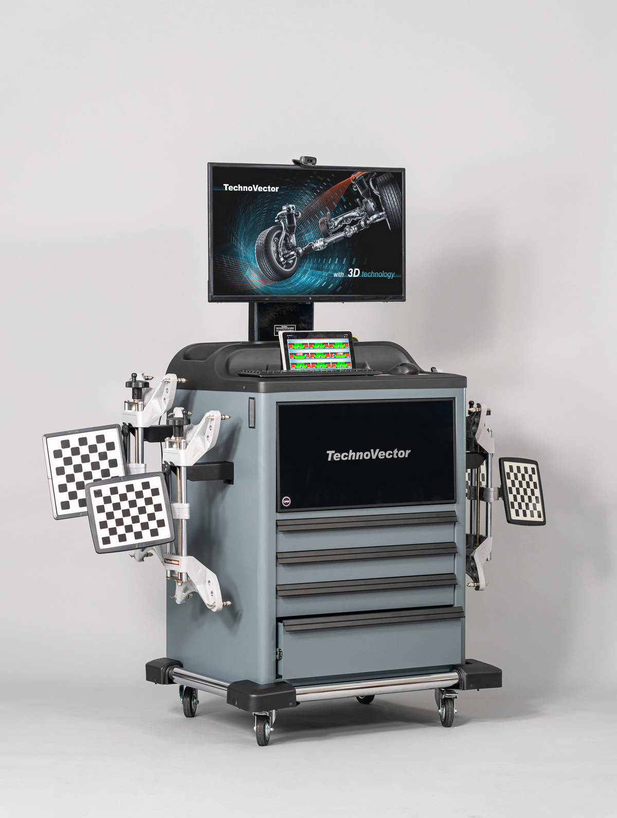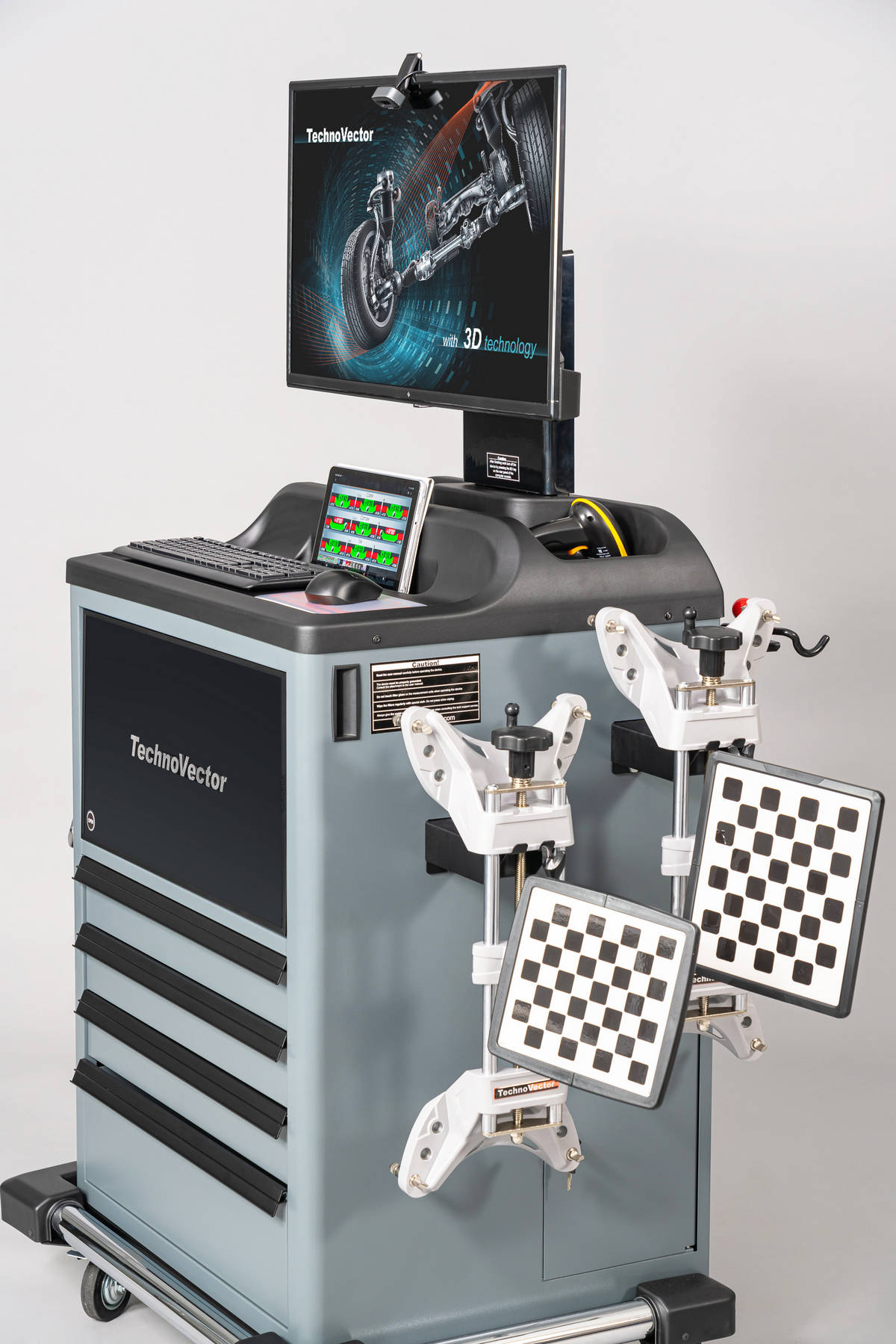 В комплект поставки входят 12 колесных адаптеров (захватов) и 12 измерительных мишеней, а также отдельно стоящие держатели для них.