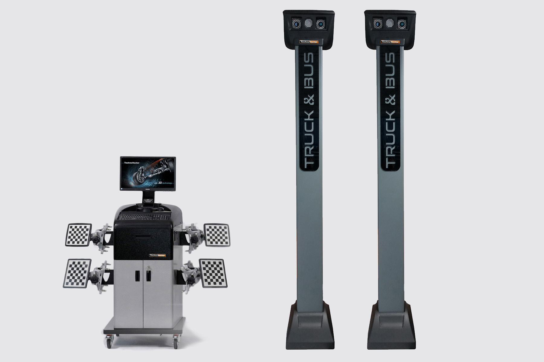ТехноВектор 7 Truck HTS6 - серия стендов, разработанная специально для регулировки развал-схождения многоосных грузовиков, тягачей, автобусов, прицепов и полуприцепов.