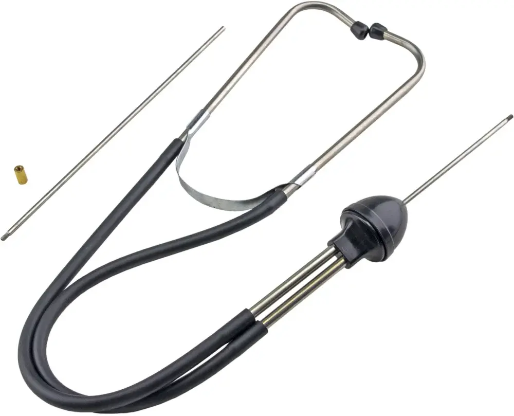 - Стетоскоп механика для акустического определения дефектов в двигателе, элементах трансмиссии, выпускной системе, системе охлаждения, топливной системе, подвеске автомобиля и прочих механизмах.