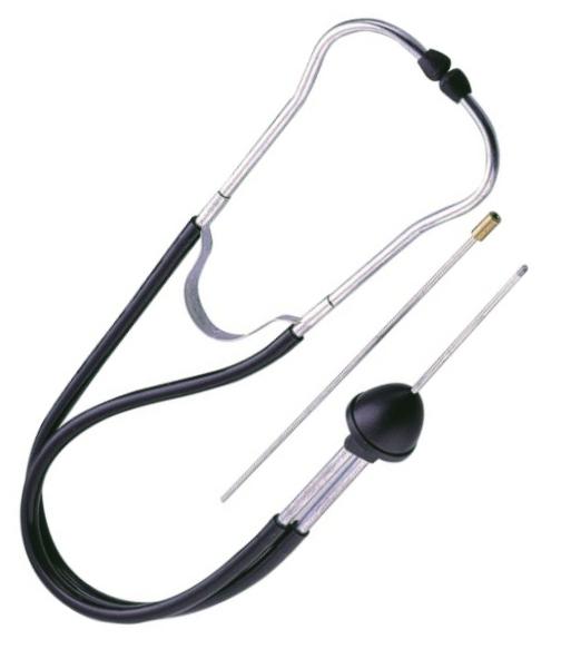 KA-6323 Стетоскоп механика. Стетоскоп механика – это инструмент применяем при проведении диагностических работ узлов и агрегатов. При помощи стетоскопа можно легко выявить неисправность подшипника или шестерни в том или ином агрегате, не проводя его демонтаж и разборку. Принцип работы основан на прослушивании шумов и вибраций посредством металлического зонда который соединен с акустической мембранной. Для облегчения доступа к труднодоступным агрегатам в комплекте идет удлинитель. Комплектность: Стетоскоп механика - 1 шт. Удлинитель - 1шт. Блистерная упаковка - 1 шт.