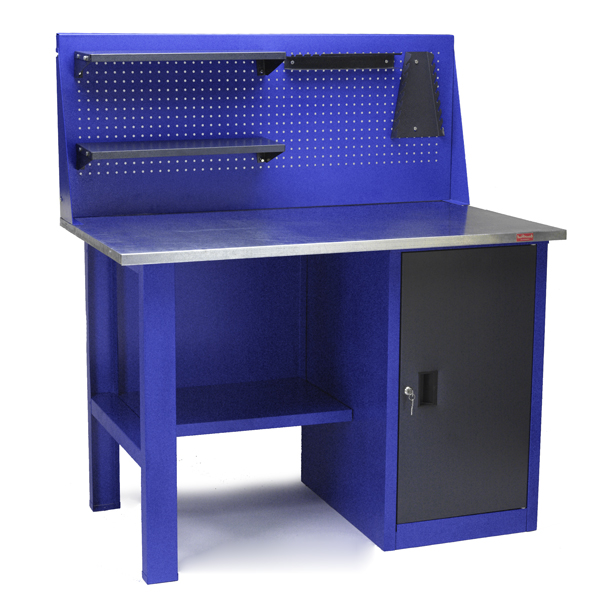 Слесарные верстаки СТАНКОИМПОРТ применяются в профессиональных авторемонтных мастерских, тюнинг ателье, частных гаражах и на производстве. Вестаки используются для выполнения различных работ по ремонту, сбору, обработке деталей, и является отличным рабочим местом для мастеров. Производятся данные верстаки на современном промышленном предприятии на территории РФ. Все основные технологические операции, такие как раскрой, резка, гибка, сварка и окраска листового металла осуществляется на высокоточном металлообрабатывающем оборудовании ведущих европейских производителей Италии и Дании. Основание верстака изготовлено из высокопрочного листового металла, а столешница из фанеры толщиной 24 мм, обшитой оцинкованным металлом толщиной 1 мм. Прочная конструкция верстака позволяет выдержать нагрузку на столешницу до 300 кг. Верстаки могут содержать в себе до 2 тумб с количеством ящиков от 1 до 5, а так же все модели могут быть дополнительно укомплектованы перфорированным экраном с полками. Ящики очень удобны для хранения инструмента и документации, за сохранность которых отвечает установленный центральный замок. Готовые верстаки покрыты порошковой краской (производство Германия). Все верстаки поставляются к клиенту в разобранном виде, с подробной инструкцией по сборке.