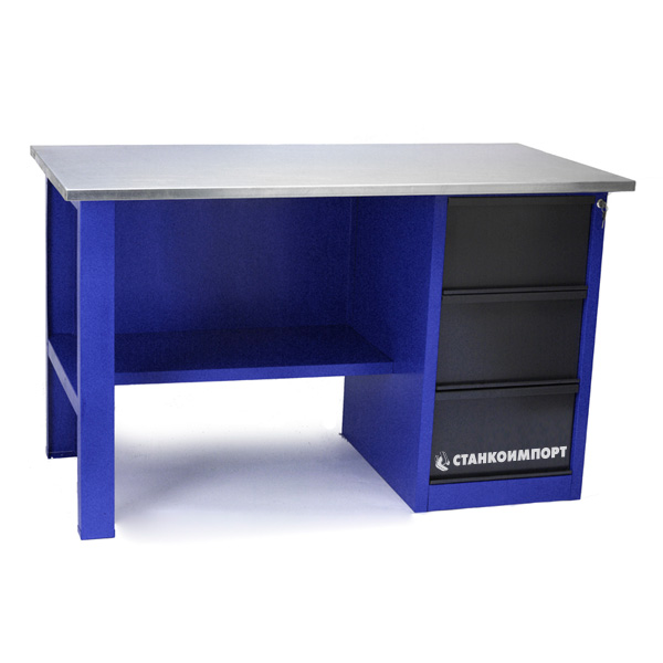 Стол для слесарных работ 1400 мм однотумбовый с 3-мя ящиками без экрана