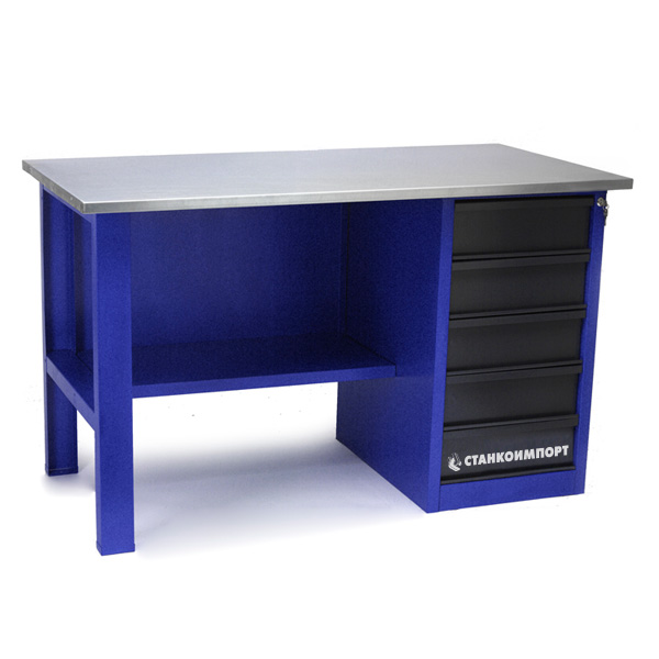 Стол для слесарных работ 1400 мм однотумбовый с 5-ю ящиками без экрана