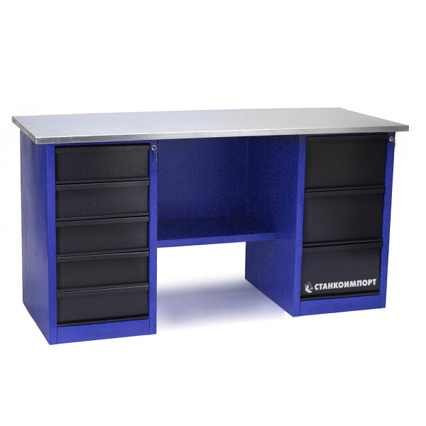Стол для слесарных работ 1600 мм 2 тумбы (тумба с 3-мя ящиками, тумба с 5-ю ящиками) без экрана