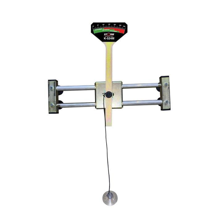 Люфтомер СТОРМ К 524 М предназначен для контроля суммарного люфта рулевых управлений автомобилей.Особенности:- Гальваническая обработка всех подлежащих корозии деталей- Основной механизм изделия выполнен из полимерных материалов- Удлиненные пальцы фиксации изделия на толстых рулевых колец- Блок питания с двумя светодиодными индикаторамиМеханический люфтомер К-524 для диагностики и измерения суммарного люфта рулевого управления автомобиля. Подходит для обслуживания руля с диаметром 360-550 мм. Стандартная комплектация устройства состоит из следующих приборов:1) Два раздвижных кронштейна, которые фиксируются на ободе руля сверху и снизу специальными упорами.2) Каретка передвижная, которая с помощью зажимного механизма стягивает направляющие стержни кронштейнов.3) Угломерная шкала, которая устанавливается на оси зажимного механизм.4) Резиновая нить, которая натягивается от зажима и до ветрового стекла диагностируемого автомобиля. Выполняет функцию «направляющей стрелки» для угломерной шкалы.Принцип работы универсального механического люфтомера К-524:1) Передвижная каретка с угломерной шкалой устанавливаются по центру руля, важно выровнять вылеты направляющих стержней относительно каретки. Это обеспечивает правильность и точность произведенных измерений, а резиновая нить «указательная стрелка» при повороте руля остается неподвижной.2) Динамометр необходимо установить на кронштейне снизу и зафиксировать винтом позицию, при которой усилие приходится на середину сечения обода.3) Далее, задача мастера состоит в том, чтобы определить угол поворота рулевого колеса согласно специальной шкале уклономера между двумя фиксированными положениями. Они определяются путем оказания равного усилия на пружинный динамометр по очереди в каждом из двух направлений. Усилие определяется индивидуально и зависит от массы оси машины, которая приходится на колеса.4) В тот момент, когда оператор начинает прикладывать усилие и вместе с тем производить поворот управляемого колеса, положения что ранее были зафиксированы, должны происходить одновременно с началом поворота колеса. Это определяется Мастером на глаз или используя дополнительное оборудование или инструмент.Устройство обладает высокой точностью и диапазон измерения люфта составляет от 0 до 30°, погрешность всего 1°.