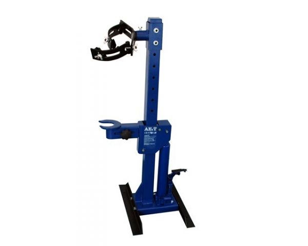 Данная модель подойдет для стягивания пружин легковых и грузовых автомобилей. Ножной привод сделан максимально удобным для большинства операторов. Верхний упор можно двигать на стойке, чтобы подстроить устройство под конкретную операцию. Широкие мощные опоры увеличивают устойчивость устройства.