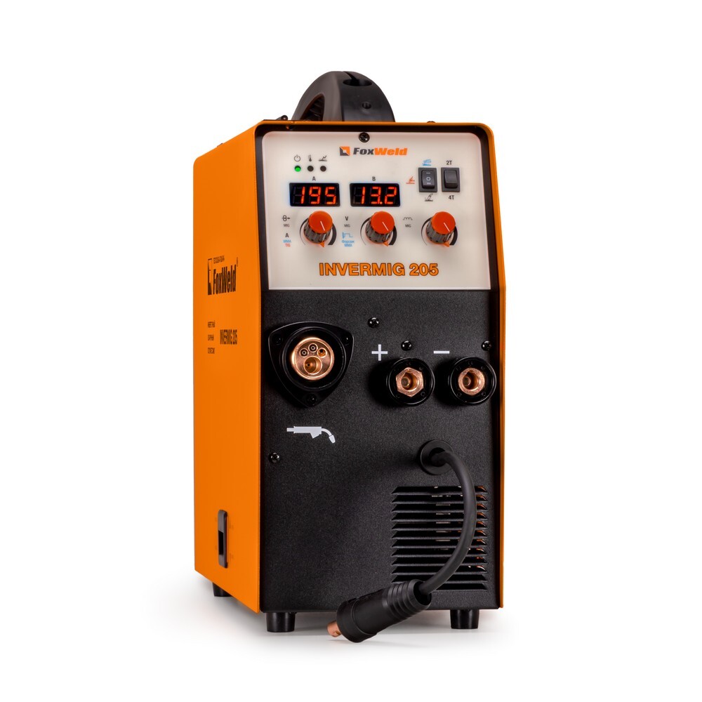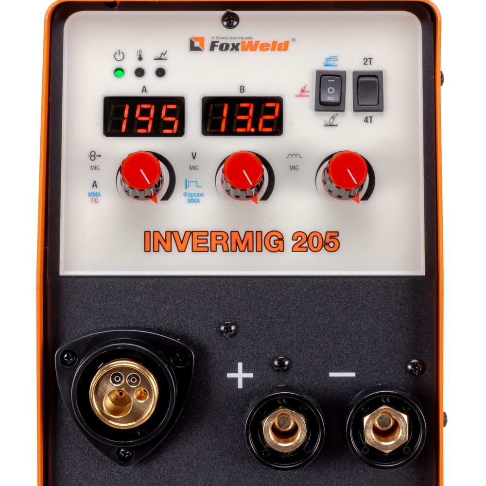 Сварочный полуавтомат FOXWELD INVERMIG 205 позволяет производить сварку постоянным током, используя инверторную технологию преобразования и управления сварочным током, что уменьшает габариты и вес по сравнению с традиционными трансформаторными полуавтоматами. С помощью данного аппарата можно проводить полуавтоматическую сварку (MIG/MAG) сплошной проволокой в среде защитного газа и самозащитной проволокой без использования защитного газа, ручную дуговую сварку (ММА) на постоянном токе штучным покрытым электродом с рутиловым и основным покрытием и аргонодуговую сварку (ТIG LIFT) на постоянном токе с возбуждением дуги касанием вольфрамового электрода. FOXWELD INVERMIG 205 имеет возможность смены полярности для самозащитной проволоки и регулировку индуктивности, которая позволяет вести процесс сварки с минимальным разбрызгиванием металла и приспосабливать процесс к любому типу работ. Это идеальный аппарат для небольшого автосервиса или гаража, для проведения авторемонтных работ.РАБОТА БЕЗ ОСТАНОВКИ: Параметр ПВ 100% на максимальном токе при КПД 85% обеспечивает бесперебойную устойчивую работу сварочного аппарата в течении всего рабочего дня. Это позволяет производить безостановочный сварочный процесс и выполнять работы, которые требуют больших временных затрат, что повышает скорость и производительность.НАДЕЖНОЕ ИСПОЛНЕНИЕ И ФУНКЦИОНАЛЬНЫЙ ДИЗАЙН: FOXWELD INVERMIG 205 использует инверторную технологию преобразования и управления сварочным током. Функции смены полярности для самозащитной проволоки и регулировки индуктивности позволяют вести процесс сварки с минимальным разбрызгиванием металла и приспосабливать процесс к любому типу работ. Сверхнадёжный полуавтоматический сварочный аппарат сочетает в себе простоту и надёжность конструкции (нет лишних компонентов и элементов), неприхотливость к условиям эксплуатации, к качеству напряжения в электросетях питания и ручное управление, которое гарантирует стабильность сварочного процесса с параметрами, выставляемыми самим сварщиком. Ручная регулировка всех режимов позволяет сделать процесс стабильным без поправки на возможные ошибки автоматики в случае автоматического подбора параметров.МНОГОФУНКЦИОНАЛЬНОСТЬ 3-В-1: Благодаря своей функциональности, аппарат позволяет проводить следующие виды работ: полуавтоматическую сварку (MIG/MAG) сплошной проволокой диаметром 0,6 / 0.8 / 1.0 мм в среде защитного газа и самозащитной проволокой без использования защитного газа, ручную дуговую сварку (ММА) на постоянном токе штучным покрытым электродом с рутиловым и основным покрытием диаметром 1,6-4,0 мм, аргонодуговую сварку (ТIG LIFT) на постоянном токе с возбуждением дуги касанием вольфрамового электрода.РАБОТА ПРИ ПОНИЖЕННОМ НАПРЯЖЕНИИ: Сварочные аппараты инверторного типа с транзисторами IGBT (Insulated Gate Bipolar Transistor) сохраняют работоспособность при отклонениях напряжения в пределах 230 В ±15%, что позволяет продолжить работу при пониженном и нестабильном напряжении электрической сети.НЕБОЛЬШОЙ ВЕС: Небольшой вес и размеры сварочного аппарата плюс ручка на корпусе добавляют мобильности, компактности и идеально подходят для бытового и полупрофессионального использования.ПРЕИМУЩЕСТВА:Полностью ручная регулировка всех режимов позволяет сделать процесс стабильным без поправки на возможные ошибки автомат