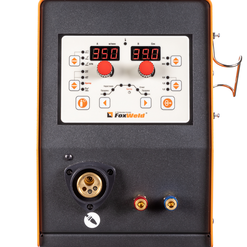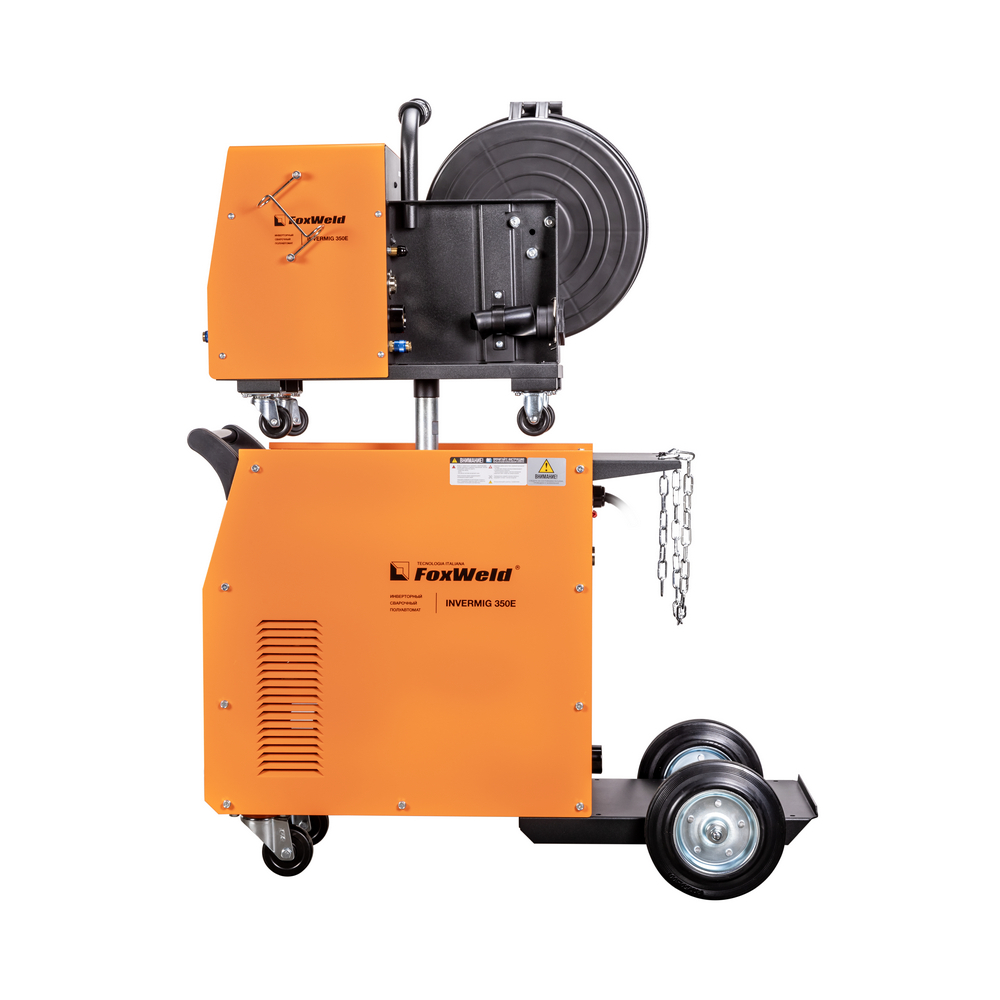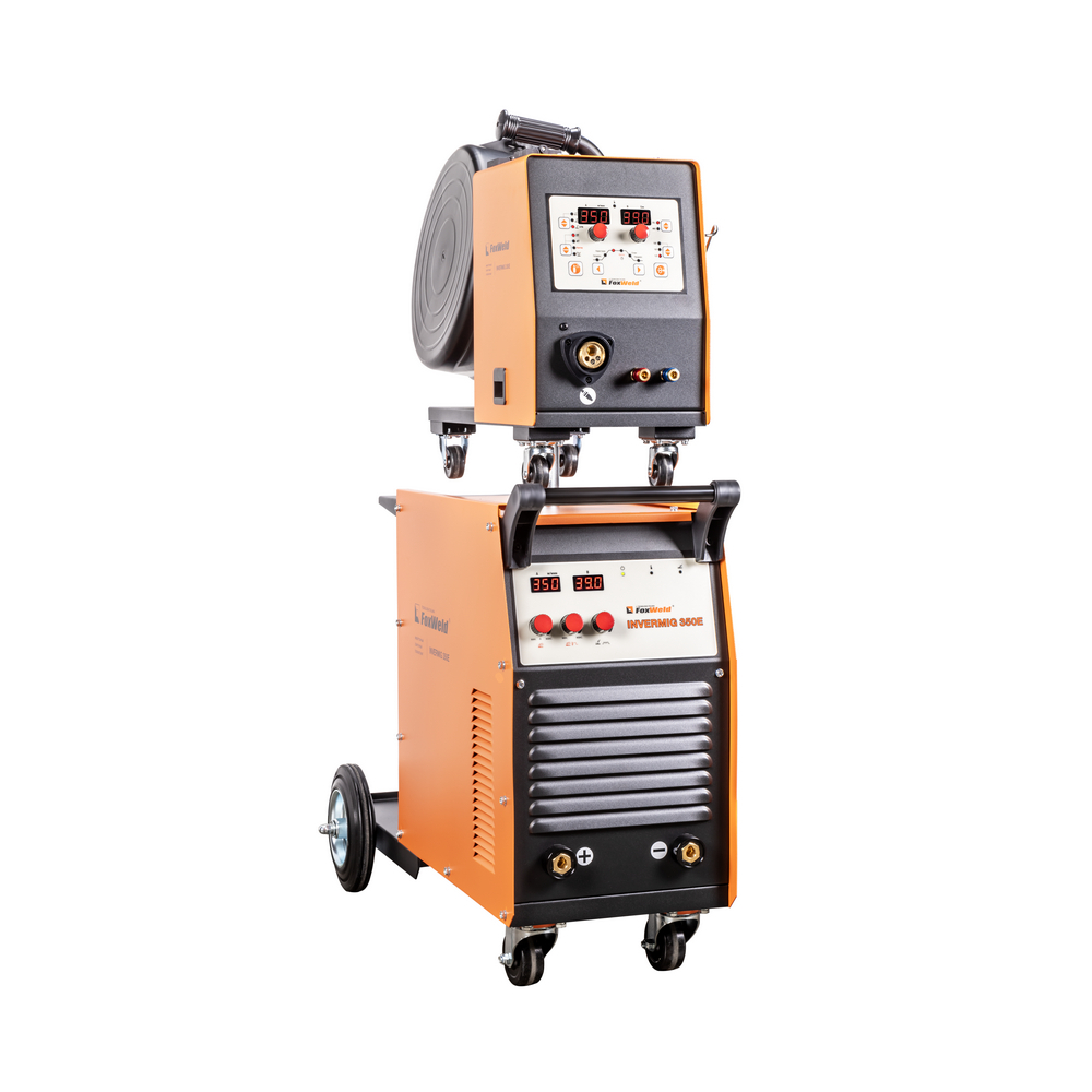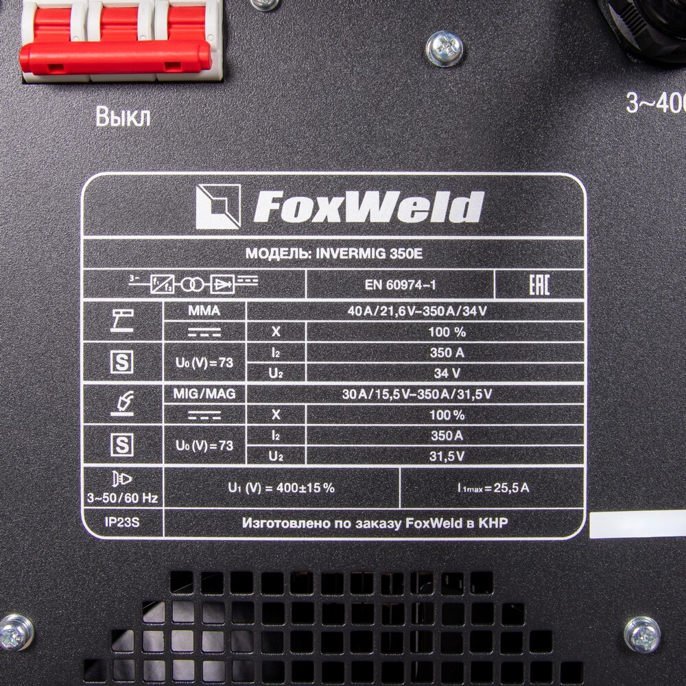 Промышленный трёхфазный инверторный сварочный полуавтомат FOXWELD INVERMIG 350E с синергетическим управлением и отдельным механизмом подачи сварочной проволоки предназначен для использования в отраслях по производству металлоконструкций, в сервисных металлоцентрах, на предприятиях, заводах и фабриках. FOXWELD INVERMIG 350E позволяет производить сварку изделий из низкоуглеродистой и легированной стали. Синергетическая система управления в режиме полуавтоматической сварки, отдельный внешний 4-роликовый полноприводный механизм подачи сварочной проволоки с собственной панелью управления и возможность подключения блока жидкостного охлаждения подойдут для работы в монтажных условиях и на крупных производствах. Интуитивно понятное управление сварочными параметрами, удобный интерфейс с необходимыми регулировками способствуют получению отличного качества сварочных швов.РАБОТА БЕЗ ОСТАНОВКИ: Параметр ПВ 100% на максимальном токе при КПД 85% обеспечивает бесперебойную устойчивую работу сварочного аппарата в течении всего рабочего дня. Это позволяет производить безостановочный сварочный процесс и выполнять работы, которые требуют больших временных затрат, что повышает скорость и производительность.ПАНЕЛЬ УПРАВЛЕНИЯ НА МЕХАНИЗМЕ ПОДАЧИ: Отдельный внешний механизм подачи сварочной проволоки оборудован собственной панелью управления с синергетикой. Синергетический режим управления сварочным процессом на МП отлично подойдёт при работе в монтажных условиях, когда источник питания и механизм подачи находятся на расстоянии.4-РОЛИКОВЫЙ МЕХАНИЗМ ПОДАЧИ: 4-роликовый полноприводный механизм подачи сварочной проволоки позволяет подавать проволоку в область сварки без рывков и проскальзываний, особенно при использовании длинных сварочных горелок. Также 4 ролика обеспечивают меньшее давление и деформацию сварочной проволоки, что критически важно для качественной и стабильной сварки.СИНЕРГЕТИЧЕСКИЙ РЕЖИМ УПРАВЛЕНИЯ: Режим синергетики позволяет сэкономить время и получить качественное сварное соединение даже новичку, так как основные параметры подбираются автоматически с возможностью тонкой ручной подстройки сварочного процесса. Синергетику можно отключить для работы в ручном режиме.УВЕЛИЧЕННЫЙ СРОК СЛУЖБЫ: Сварочный аппарат исполнен в качественном и надёжным корпусе и рассчитан на интенсивную ежедневную эксплуатацию на максимальном токе. Источник питания относится к классу профессионального и надёжного оборудования. Высокая культура производства завода изготовителя, надёжные и мощные компоненты аппарата, грамотная и продуманная система отвода тепла, проверенная временем и надёжная схемотехника инвертора на IGBT транзисторах гарантируют жизненный цикл аппарата не менее 10 лет.ПРЕИМУЩЕСТВА:Возможность сварки без газа самозащитной проволокойОтдельный 4-роликовый полноприводный механизм подачи с собственным управлениемПВ при максимальном токе 100%Режимы работы горелки 2T, 4T, SP4T, SPOTКонтролируемая сварка при меняющемся зазореРавномерная чешуйчатость создает хороший внешний вид шваИдеальная сварка тонких листов из нержавеющей сталиМеньшая деформация благодаря концентрированной сварочной дугеБыстрая сварка без подрезов, брызг и доработокОтличное перекрытие зазораФУНКЦИОНАЛЬНЫЕ ОСОБЕННОСТИ:РЕЖИМ MIG/MAG: режим сварки 