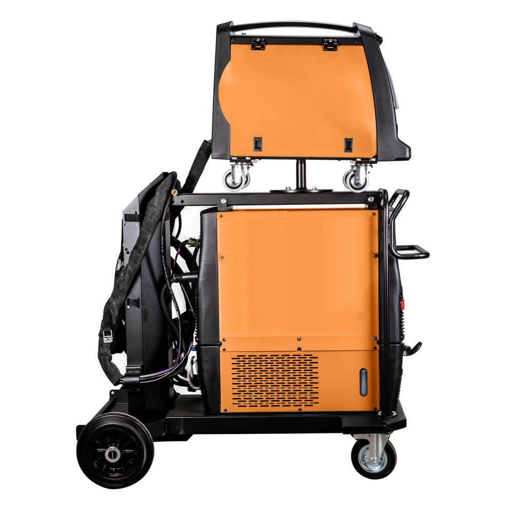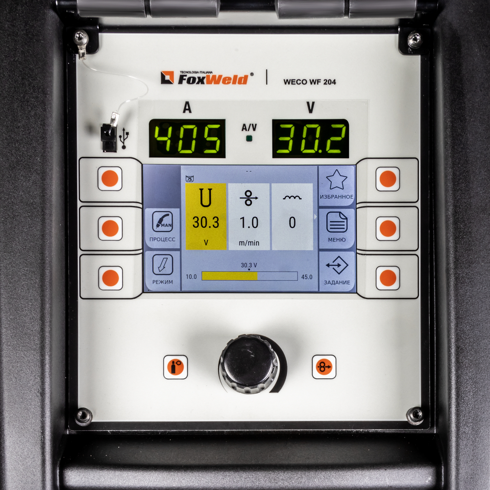 Сварочный полуавтомат FOXWELD WECO MIG 505 DP DIGITAL — профессиональный синергетический сварочный аппарат 6-в-1 с отдельным 4-роликовым механизмом подачи проволоки и блоком жидкостного охлаждения, предназначенный для работы в экстремальных условиях окружающей среды. Режимы PULSE и DOUBLE PULSE упрощают процесс сварки алюминия и сплавов, а также нержавеющих сталей, обеспечивая надежность соединения. Улучшенная форма волны импульсной сварки сочетает в себе лучшее из всех других форм переноса и при этом сводит к минимуму ошибки оператора. Мощный микропроцессор позволяет управлять всеми функциями сварки с отдельного механизма подачи.Аппараты FoxWeld серии WECO собрали в себе опыт разработки и эксплуатации профессионального сварочного оборудования, начиная с 1998 г. Все аппараты линейки WECO разрабатываются и производятся в Италии на заводе Corso Noblesville. Высокое качество производства и надежность наших аппаратов позволяют обеспечивать расширенную гарантию на всю линейку FoxWeld серии WECO.ФУНКЦИЯ K DEEP: Обеспечивает равномерное проплавление во время сварки, независимо от изменения толщины заготовки. Уменьшает такие дефекты соединений, как отсутствие сплавления и неравномерное проплавление. Для сварщика обеспечивается прекрасная управляемость горелкой.РЕЖИМ DSI: Режим DSI (Digital Sense Ignition) позволяет добиться поджига дуги практически без брызг, взрывов проволоки и с минимальным тепловым воздействием на свариваемую деталь. Возможность быстрого включения или отключения с помощью "избранных" кнопок или через горелку Digimanager.РЕЖИМ POWER MIX: Процесс POWER MIX позволяет выполнять сварку в различных положениях, задавая лишь толщину свариваемого материала, без необходимости использования множества параметров настройки. Просто задав толщину материала, вы получите сбалансированную сварочную дугу, обеспечивающую отличную производительность и превосходный результат с эстетической точки зрения.ФУНКЦИЯ POWER FOCUS: Концентрация дуги POWER FOCUS позволяет сварщику сфокусировать высокую температуру дуги в центральной части сварочной ванны, избегая таким образом перегрева кромок. Это новая технология сварки деталей из углеродистой стали используется, когда требуется глубокий провар в сочетании с высокой производительностью. Сфокусированная дуга позволяет делать меньшее число проходов для заполнения стыковых швов.ФУНКЦИЯ POWER ROOT: Функция вместе с синергетическими программами оптимизирует холодно-капельный перенос металла для получения высокого качества сварки корневого шва углеродистых и нержавеющих сталей, в том числе аустенитных. Технология обеспечивает улучшенную форму шва при сварке тонких деталей и при выполнении вертикальных швов с большим зазором.ПРЕИМУЩЕСТВА:Двойной импульс, обеспечивающий качественную и надёжную сварку алюминия и нержавеющей сталиСинергетический режим управленияВозможность загрузки/сохранения/передачи 99 программ сварки4-роликовый механизм подачи с цифровым интерфейсом и возможностью бесперебойной работы до 50 мМаксимальный ток 500 A в режимах MIG/MAG, TIG LIFT, MMAМощный микропроцессор позволяет управлять всеми функциями сварки с отдельного механизма подачиФУНКЦИОНАЛЬНЫЕ ОСОБЕННОСТИ:ФУНКЦИЯ HIGH CONTROL: Новая система High Control (Pulse НС) отличается эффективным контролем дуги для оптимизации отрыва капель при максимально сниженной мощности источника. Благо