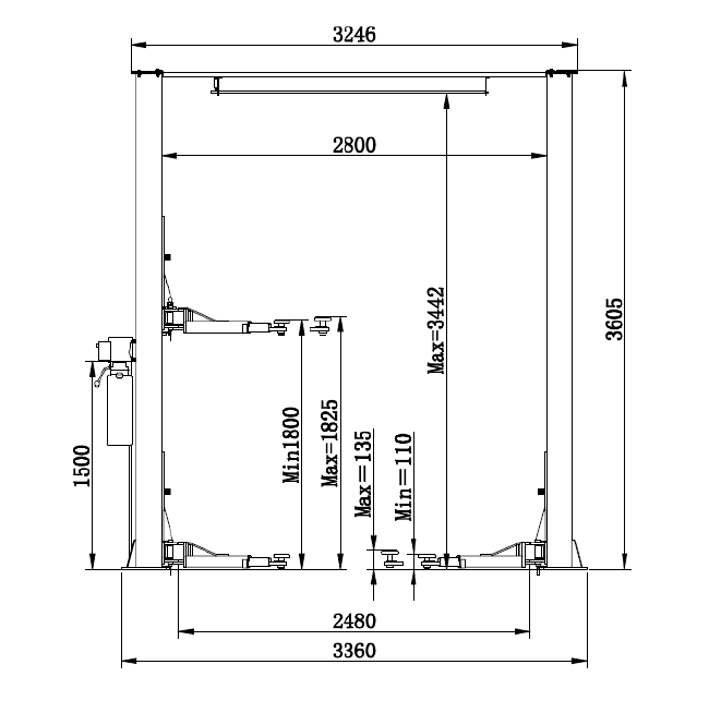 - Механическое управление стопорами на двух колоннах