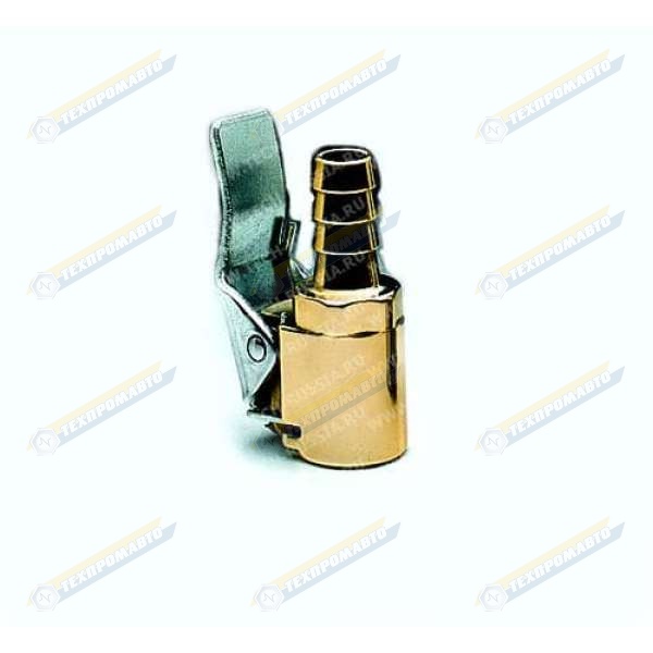 Устанавливается на конце воздушного шланга пистолетов для подкачки колес GUN 1, GUN 2, GUN 3, GUN 4, GUN 5, GUN6, GUN7, предназначен для жёсткого соединения воздушного шланга и вентиля автомобильного колеса при его накачке. Переходник изготовлен из латунного сплава, имеет мощную пружину и одну прижимную пластину. Не допускает соскакивания с вентиля и утечку воздуха при накачивании колеса. Имеет соединение «ёлочку» для воздушного шланга с внутренним диаметром 8 мм.