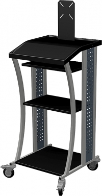 'Имеет возможность горизонтальной и вертикальной установки системного блока, комплектуется 2 регулируемыми по высоте полками, оснащена пластиковой наклонной крышкой с бортиком, для установки клавиатуры или ноутбука, возможна установка тумб серии Стандарт, все колеса поворотные и 2 из них с тормозом, покрыта порошковой покраской, имеет перфорированные боковые панели. Габаритные размеры 590х550х1060h с держателем монитора 1410h Масса нетто/ брутто 22/25 кг V-0,3куб. Максимальная нагрузка на тележку 200 кг, максимальная нагрузка на полку (верхняя/ нижняя) 80 кг, максимальная нагрузка на полку съемную (малую/ большую) 40 кг '