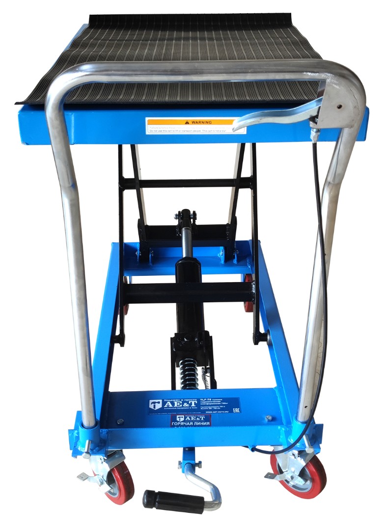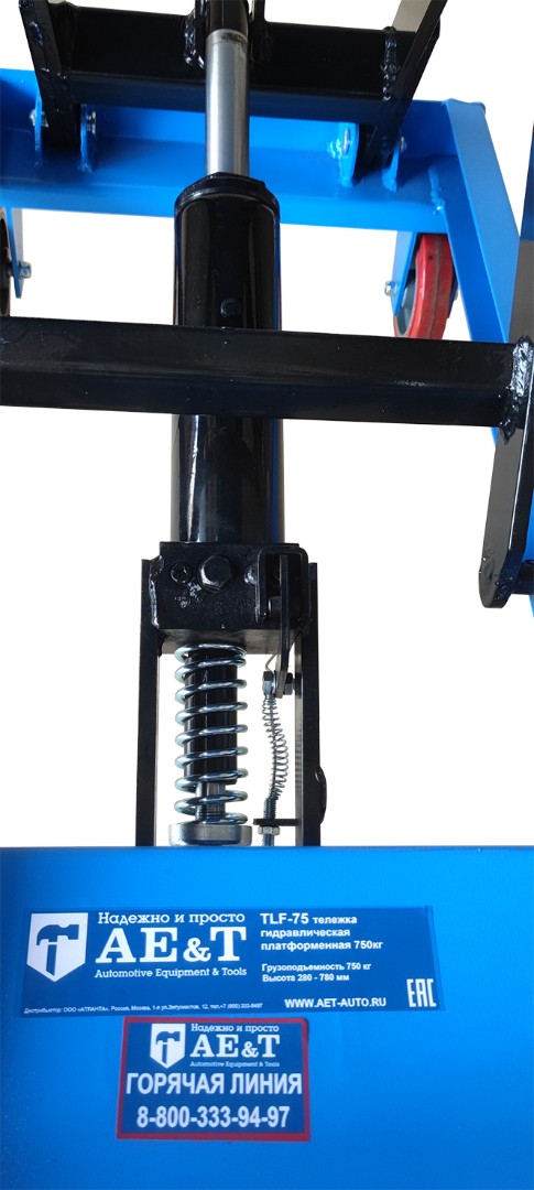 - Необходимо своевременно осуществлять смазку подвижных частей гидравлической тележки TLF-75. Производите визуальный контроль износа колес и тормозной системы, чтобы вовремя заменить поврежденные детали.