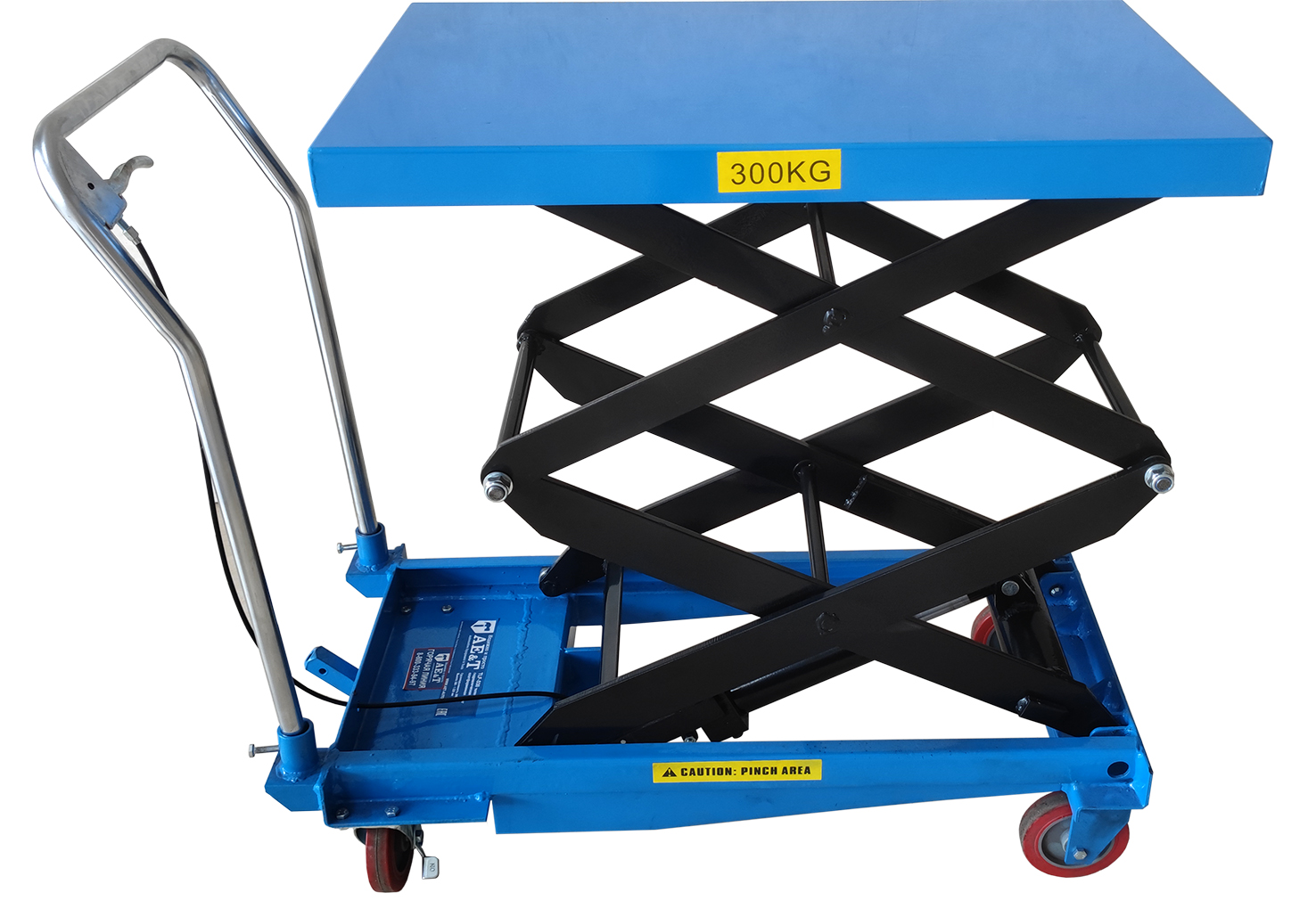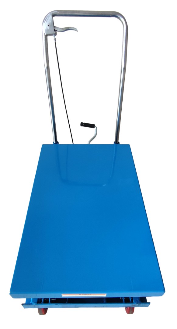Оборудование прочное, изготовлено из качественных долговечных материалов, имеет красивый внешний вид и отличается простотой в эксплуатации. Подъем грузовой платформы осуществляется нажатием на педаль. Опускание регулируется рукояткой.