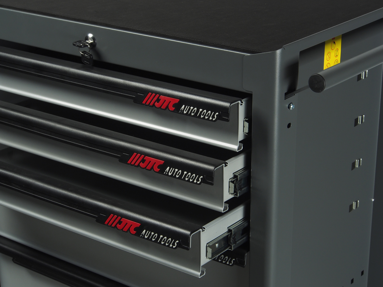 Перфорированные внутренние стенки боковых ящиков с квадратными отверстиями предоставляют возможность разместить дополнительные аксессуары для хранения инструментов. Применяется с серией подвесных приспособлений JTC-3218.