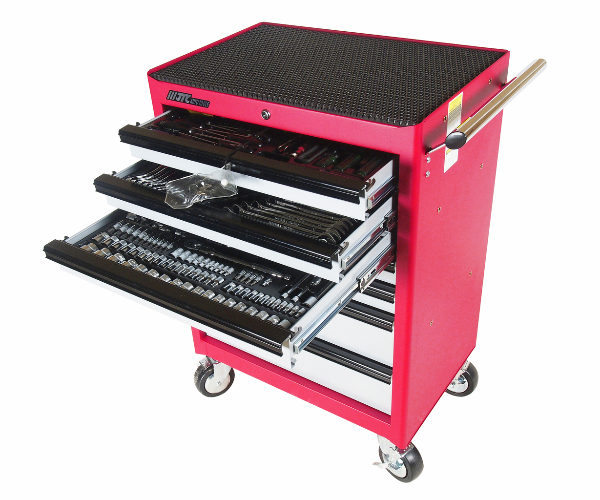 Все ящики снабжены быстросъемными полозьями на роликах, полностью выдвигаются и легко вынимаются из тележки.