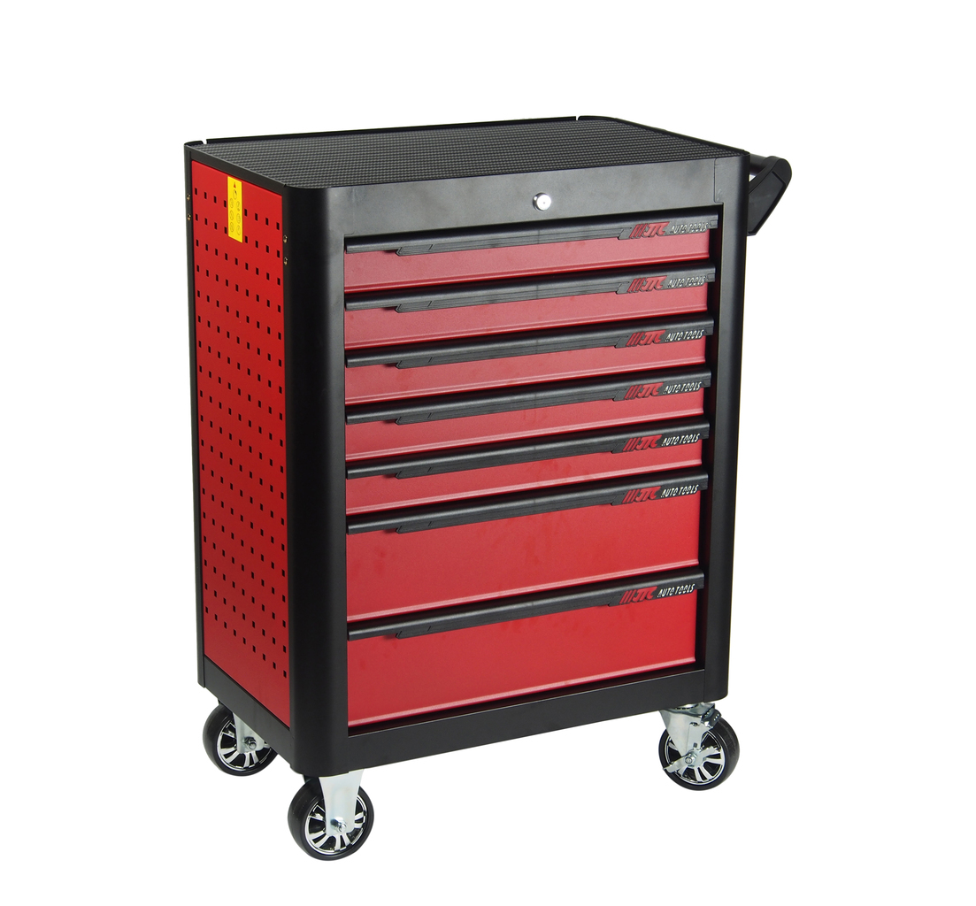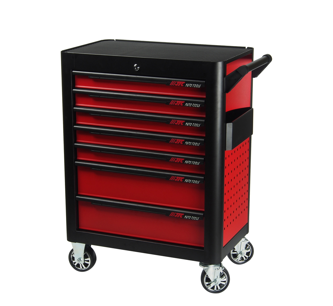 Перфорированные внутренние стенки боковых ящиков с квадратными отверстиями предоставляют возможность разместить дополнительные аксессуары для хранения инструментов. Применяется с серией подвесных приспособлений JTC-3218.