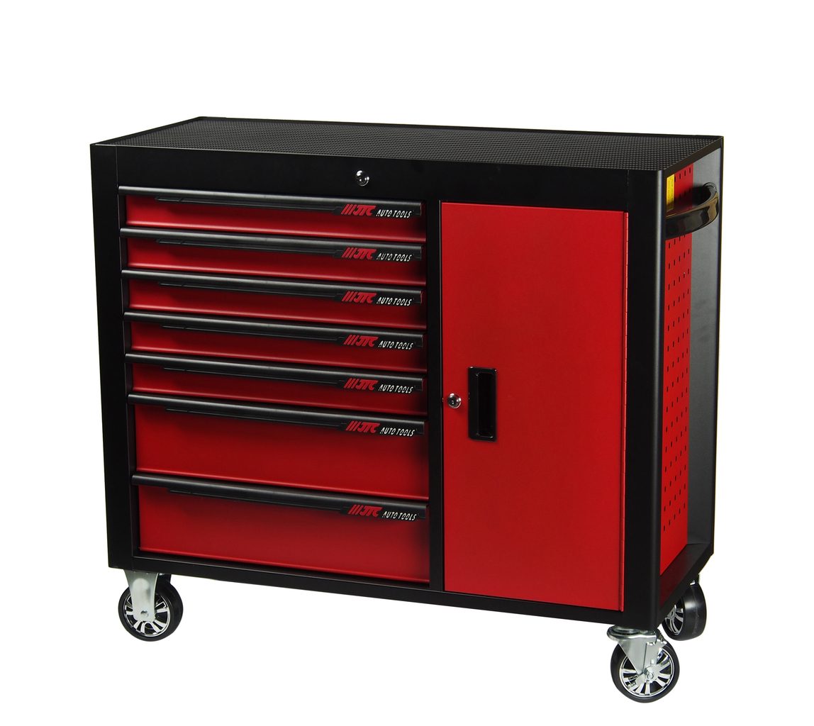Перфорированные внутренние стенки боковых ящиков с квадратными отверстиями предоставляют возможность разместить дополнительные аксессуары для хранения инструментов. Применяется с серией подвесных приспособлений JTC-3218.