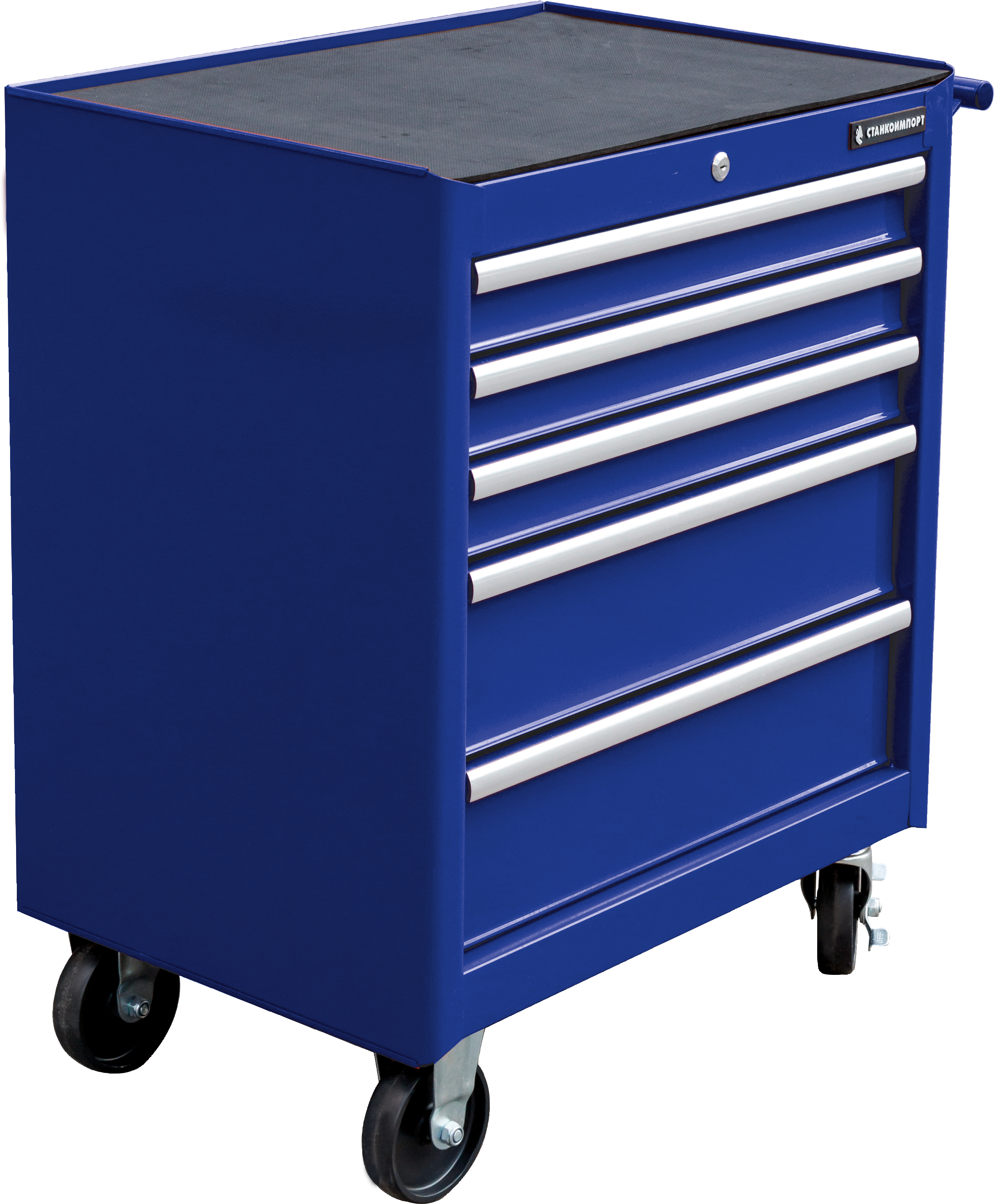 Тележки инструментальные СТАНКОИМПОРТ серии BTD предназначены для использования на предприятиях любого профиля осуществляющих ремонт, обслуживание и изготовление продукции. Наибольшей популярностью тележки инструментальные пользуются в сфере авторемонта и обслуживания автомобилей. Особенности: Тележки имеют систему антиопрокидывания (ODOO), которая предотвращает одновременное открывание всех ящиков и опрокидывание телеги. Что может привести к травмам персонала и материальными потерями. Ящики имеют центральный замок, который позволяет ограничить доступ посторонних лиц к содержимому ящиков. Усиленные шариковые направляющие с автовозвратом позволяют выдерживать нагрузку на ящик в 40 кг и предотвращают открывание при перемещении тележки. В каждом ящике подложка из материала EVA толщиной 2,5 мм, которая предотвращает скольжение ложемента с инструментом при открытии или перемещении тележки. Ящики имеют алюминиевую рукоятку для более удобного открывания. Корпус тележки и ее ящиков изготовлен из высококачественной стали толщиной 0,8 мм, а также имеет ребра жесткости, что существенно увеличивает ресурс тележки. Тележки для инструмента оснащены четырьмя колесами диаметром 120 мм: двумя неповоротными и двумя поворотными, изготовленными из PP (полипропилена) со стопором, который фиксирует тележку и предотвращает непроизвольное скатывание. Верхняя поверхность тележки имеет маслобензостойкий коврик толщиной 5 мм. Тележки покрашены порошковой краской синего цвета RAL 5002. Тележки инструментальные СТАНКОИМПОРТ серии BTD комплектуются двумя видами ящиков: Габаритные размеры ящика: 568x398x75 мм - 3 шт. Габаритные размеры ящика: 568x398x154 мм - 2 шт. Наполнить свою тележку