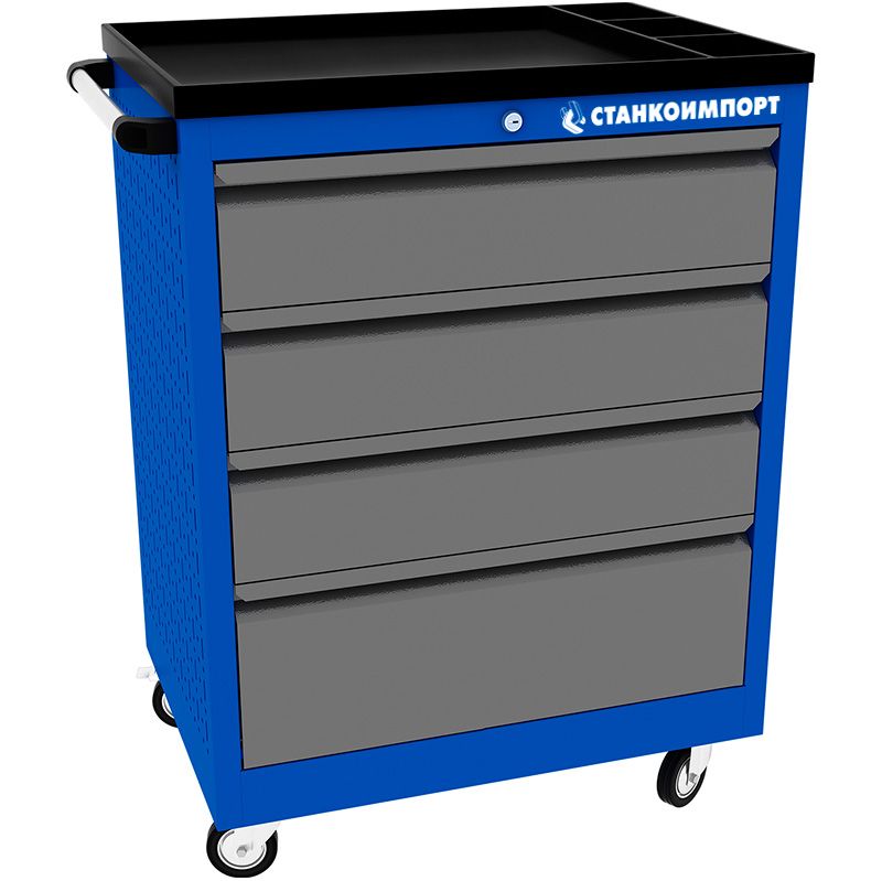 Тележки инструментальные серии PROFFI 950 предназначены для использования на предприятиях любого профиля осуществляющих ремонт, обслуживание и изготовление различной продукции. Тележки изготовлены высотой 950 мм, что позволяет использовать их в качестве рабочего стола. Также они подходят для установки на них диагностического оборудования. На боковые стенки инструментальной тележки нанесена перфорация размером 25х25 мм и диаметром отверстия 8 мм, что позволяет устанавливать на них навесной инструмент или крючки. Наибольшей популярностью тележки инструментальные пользуются в сфере авторемонта и обслуживания автомобилей. Тележки имеют выдвижные ящики на шариковых телескопических направляющих полного выдвижения с фиксацией на ключ в закрытом положении, предотвращающее открывание при передвижении тележки. Ящики имеют центральный замок, который позволяет ограничить доступ посторонних лиц к содержимому ящиков. Тележка инструментальная изготовлена из высококачественного металла ведущих российских производителей, покрашена порошковой краской производства Германии, имеет фурнитуру произведенную в Италии и Турции. Тележки для инструмента оснащены двумя не поворотными колесами диаметром 100 мм, одним поворотным и одним поворотным со стопором, которое фиксирует тележку и предотвращает непроизвольное скатывание. Тележки инструментальные серии PROFFI 950 комплектуются тремя видами ящиков: Малый ящик (в х ш х г), мм - 75 х 570 х 430 Средний ящик (в х ш х г), мм - 150 х 570 х 430 Большой ящик (в х ш х г), мм - 225 х 570 х 430 Наполнить свою тележку Данная модель имеет 4 выдвижных ящика размером : Средний ящик (В х Ш х Г), мм - 150 х 570 х 430 – 2 шт. Большой ящик (В х Ш х Г), мм - 225 х 570 х 430 – 2 шт Грузоподъемность ящиков до 30 кг.