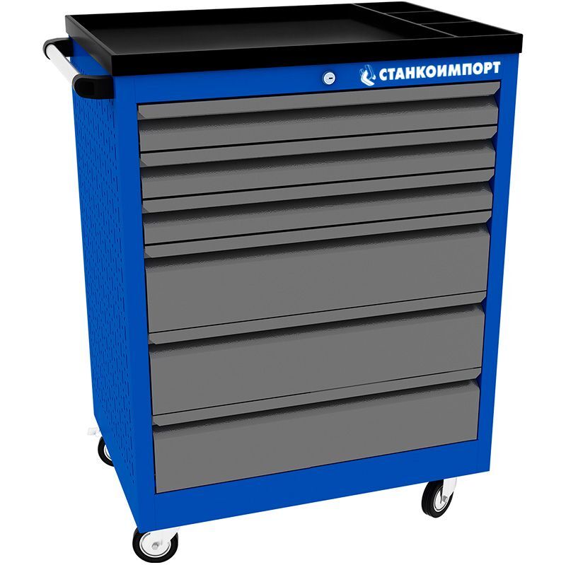Тележки инструментальные серии PROFFI 950 предназначены для использования на предприятиях любого профиля осуществляющих ремонт, обслуживание и изготовление различной продукции. Тележки изготовлены высотой 950 мм, что позволяет использовать их в качестве рабочего стола. Также они подходят для установки на них диагностического оборудования. На боковые стенки инструментальной тележки нанесена перфорация размером 25х25 мм и диаметром отверстия 8 мм, что позволяет устанавливать на них навесной инструмент или крючки. Наибольшей популярностью тележки инструментальные пользуются в сфере авторемонта и обслуживания автомобилей. Тележки имеют выдвижные ящики на шариковых телескопических направляющих полного выдвижения с фиксацией на ключ в закрытом положении, предотвращающее открывание при передвижении тележки. Ящики имеют центральный замок, который позволяет ограничить доступ посторонних лиц к содержимому ящиков. Тележка инструментальная изготовлена из высококачественного металла ведущих российских производителей, покрашена порошковой краской производства Германии, имеет фурнитуру произведенную в Италии и Турции. Тележки для инструмента оснащены двумя не поворотными колесами диаметром 100 мм, одним поворотным и одним поворотным со стопором, которое фиксирует тележку и предотвращает непроизвольное скатывание.