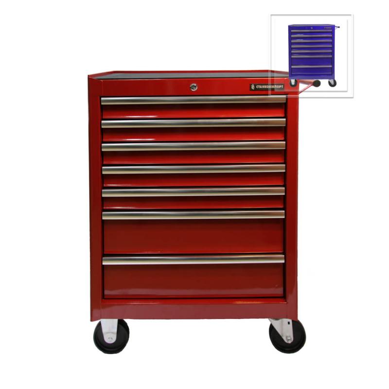 Тележка инструментальная с 7 ящиками, красного цвета