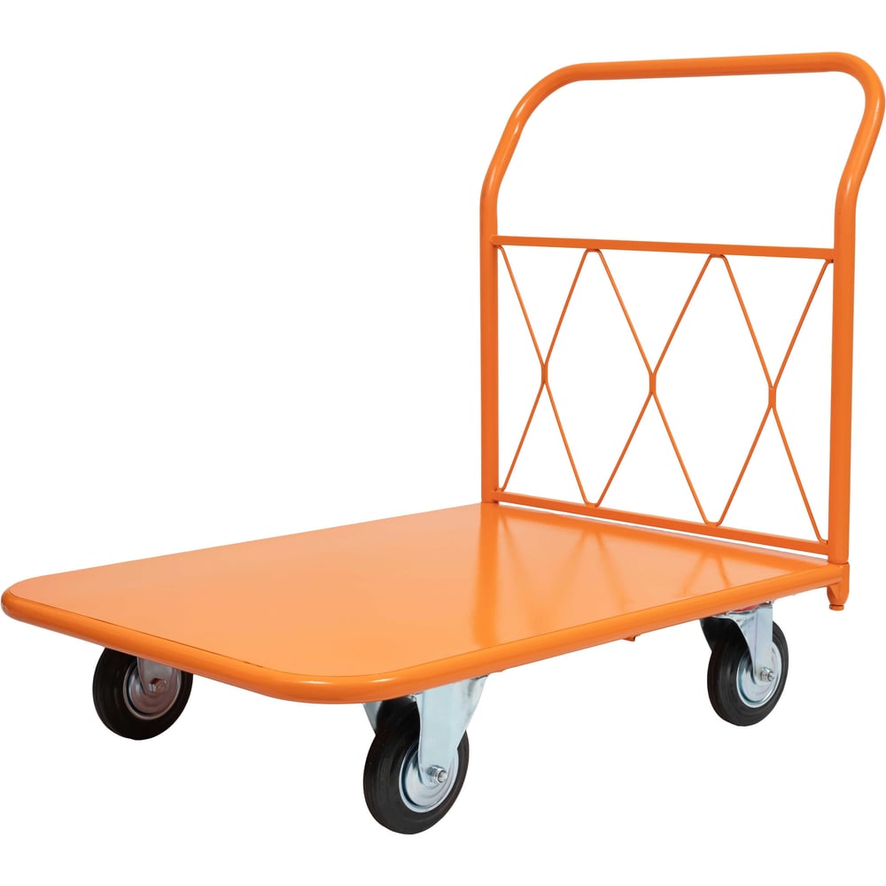 Тележка платформенная 700х1000 D160мм Gigant ТП-008 служит для бережной транспортировки различных грузов и товаров суммарной массой до 450 кг. Отсутствие бортиков позволяет транспортировать неформатные грузы. Тележка обладает вместительной платформой из листа металла и четырьмя колесами диаметром 160 мм. Полимерное порошковое покрытие устойчиво к влиянию коррозии, что позволяет использовать приспособление на открытом воздухе даже при неблагоприятных погодных условиях. Высокая рукоятка исключает травмирование человека.