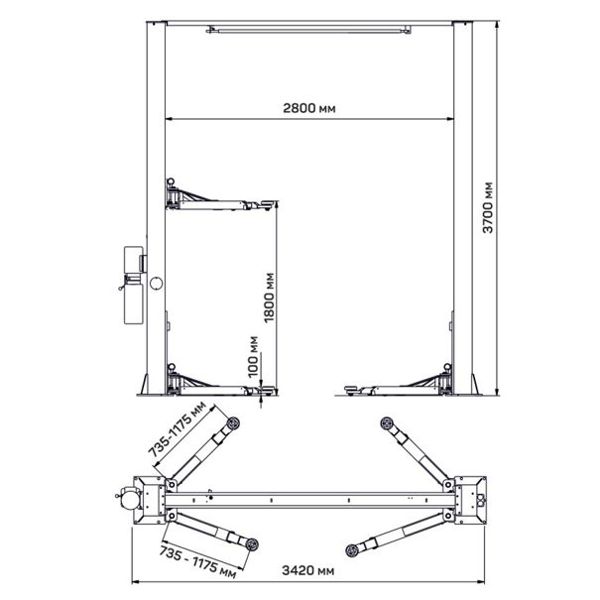 Подъемник автомобильный гидравлический двухстоечный S4B-2 с верхней тросовой синхронизацией.