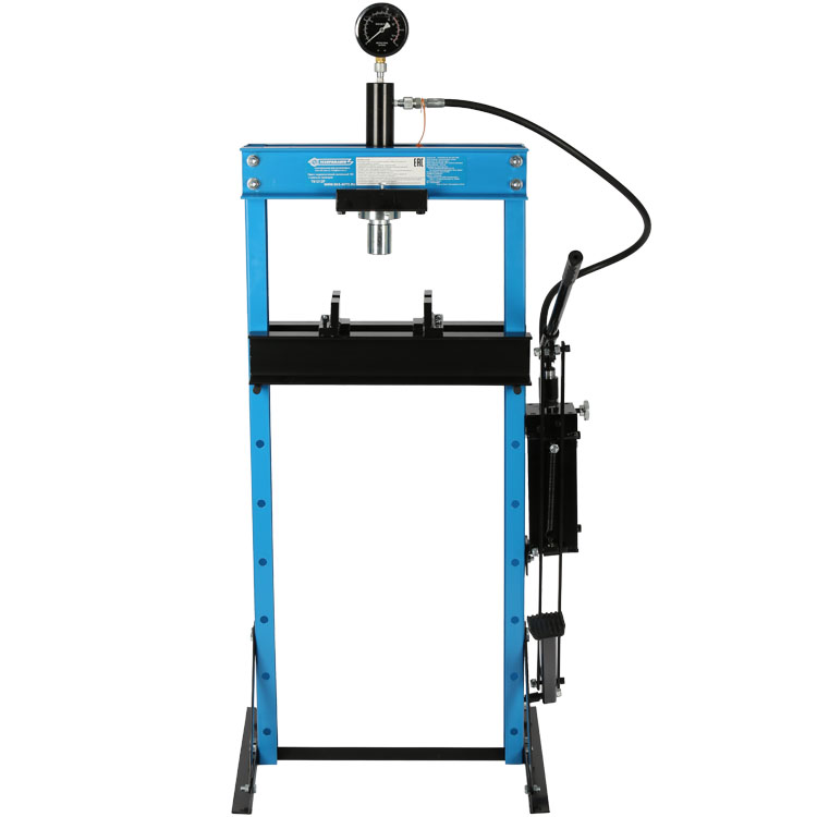Пресс с ножной педалью ТЕМП Т61212F обеспечивает усилие прижима 12 тонн. Модель находит применение на станциях технического обслуживания, в автомастерских, крупных автопарках. Модель не нуждается во внешнем источнике питания, что позволяет использовать ее в том числе и на обесточенных площадках. Прочная металлическая рама обеспечивает долгий срок службы агрегата. Ход штока составляет 180 мм, рабочий диапазон 0-918 мм. Ширина стола равняется 510 мм. Положение цилиндра не меняется в процессе эксплуатации.