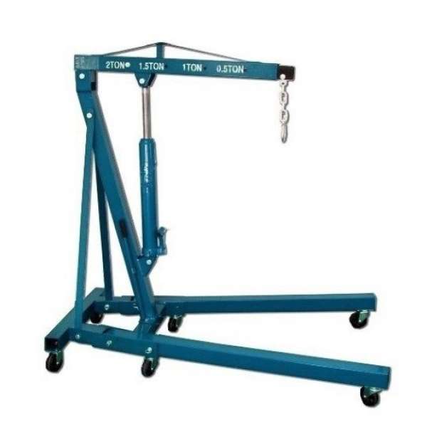 Кран гаражный гидравлический, складной, г/п 2000 кг. Однотактная помпа: подъем стрелы осуществляется при давлении рычага только вниз.
