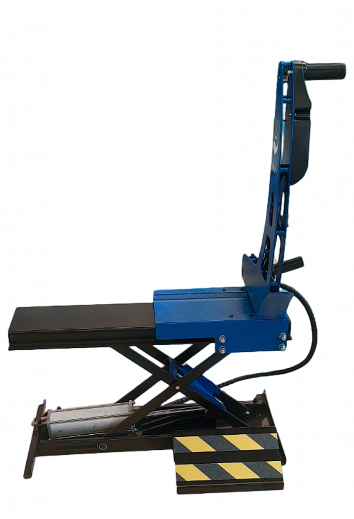 Оборудование устанавливается справа от вала балансировочного стенда и предназначено для подъема колес и установки (позиционирования) центрального отверстия колесного диска на вал балансировочного стенда. Максимальный вес колеса, который может поднять устройство, составляет 70 кг.