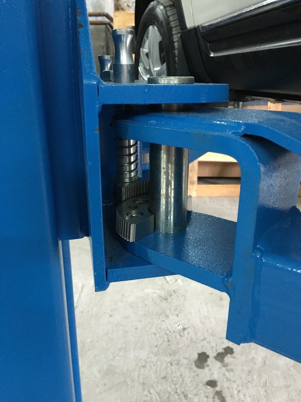 Нижняя тросовая система синхронизации перемещения кареток позволяет устанавливать подъёмник в невысоких помещениях, а также поднимать габаритные автомобили на максимальную высоту.
