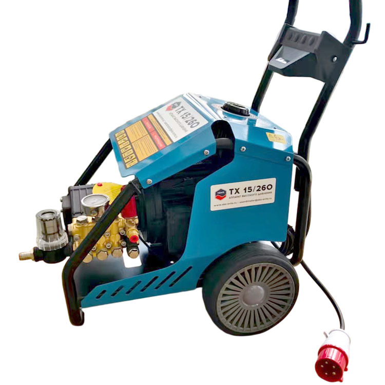 Профессиональный аппарат высокого давления с латунной помпой, оснащенной керамическими плунжерами. АВД разработана специально для коммерческого использования.