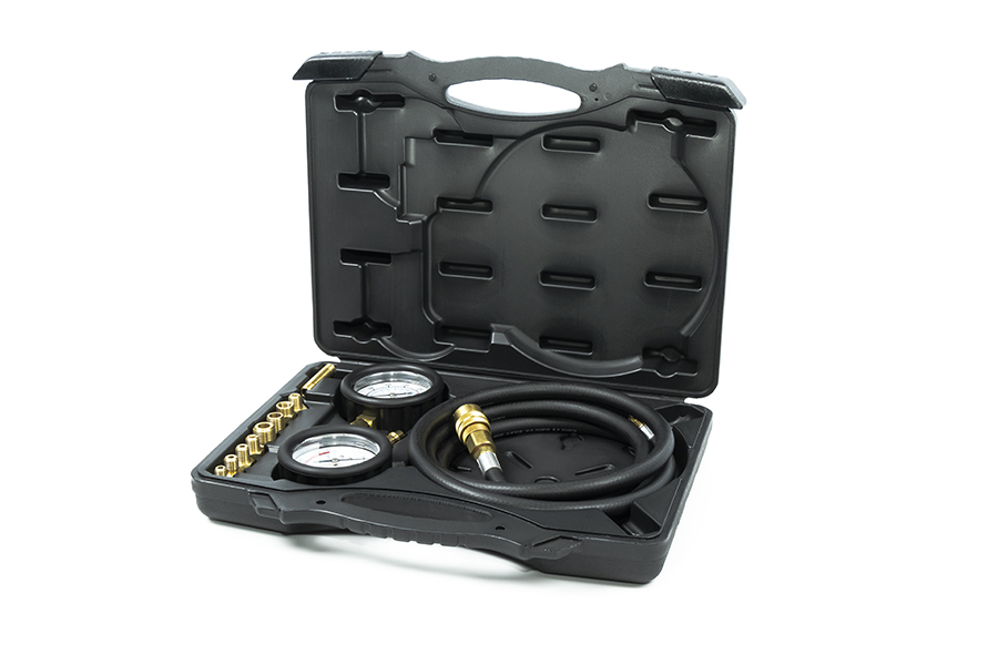 KA-7548 Тестер давления масла. Используется для тестирования давления масла в АКПП и двигателях легковых и грузовых автомобилей. Особенности: Манометры в ударопрочной защите. Разъёмы манометров и шланга имеют быстросъёмые соединения. Набор может использоваться для диагностики как АКПП, так и двигателя. Комплект набора: Манометр 0-10 bar, с быстроразъемным соединением; Манометр 0-28 bar, с быстроразъемным соединением; Гибкий удлинитель (1.8 м, быстроразъемное соединение, резьба 1/4'-18 NPT) и адаптером 1/4'-18 х 1/8'-27 NPT; Адаптер 1/8'-27 х 1/4'-18 NPT; Адаптер 1/8'-27 х 3/8'-18 NPT; Адаптер 1/8'-27 х М8х1.0; Адаптер 1/8'-27 х М10х1.0; Адаптер 1/8'-27 х М12х1.5; Адаптер 1/8'-27 х М14х1.5; Адаптер под 90° 1/8'-27 х 1/8'-27 NPT; Адаптер внешний удлиненный (50мм) 1/8'-27 х 1/8'-27 NPT; Адаптер внутренний 1/8'-27 х 1/8'-27 NPT; Упаковка. Инструкция - 1 шт. Кейс для хранения - 1 шт. Будьте внимательны и осторожны! При работающем двигателе и АКПП, давление масла имеет большую величину! Использование набора допускается только квалифицированным персоналом с соблюдением техники безопасности!