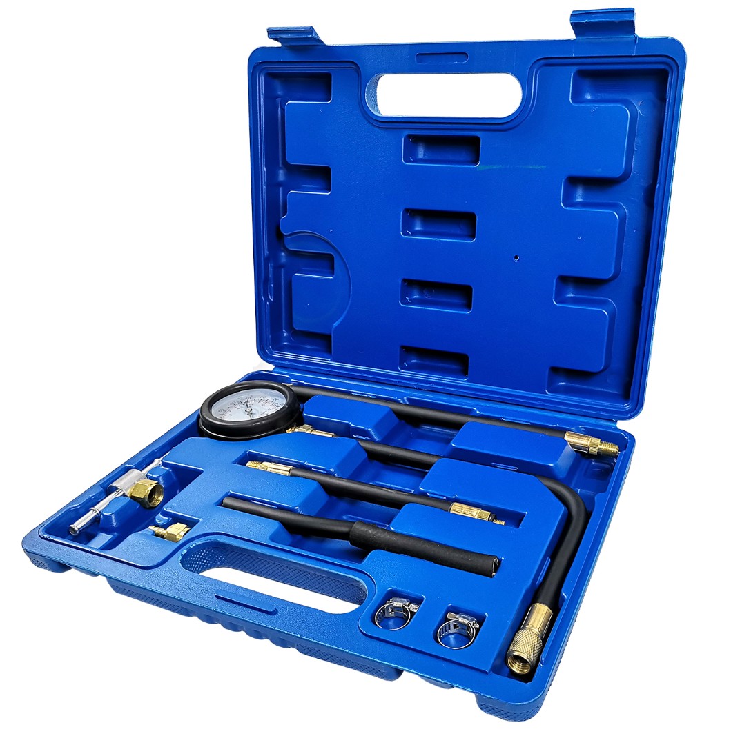 Тестер давления топлива TA-G1081 подходит для применения в большом количестве автотранспортных предприятий. При компактных габаритах и весе около 800 граммов учтены все основные потребности сервисов – есть 3 адаптера под диаметры 1/8, 1/4 и 3/8 дюйма, точный манометр 0-7 бар, пять различных шлангов, зажимы.