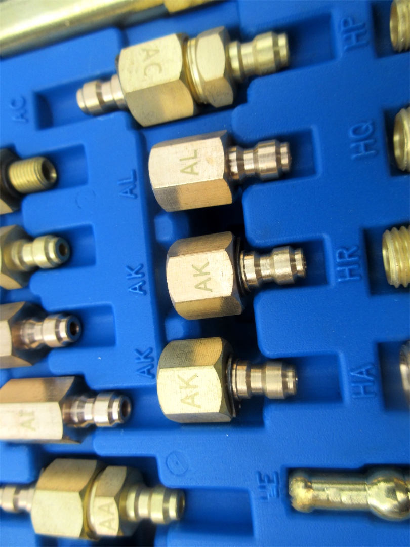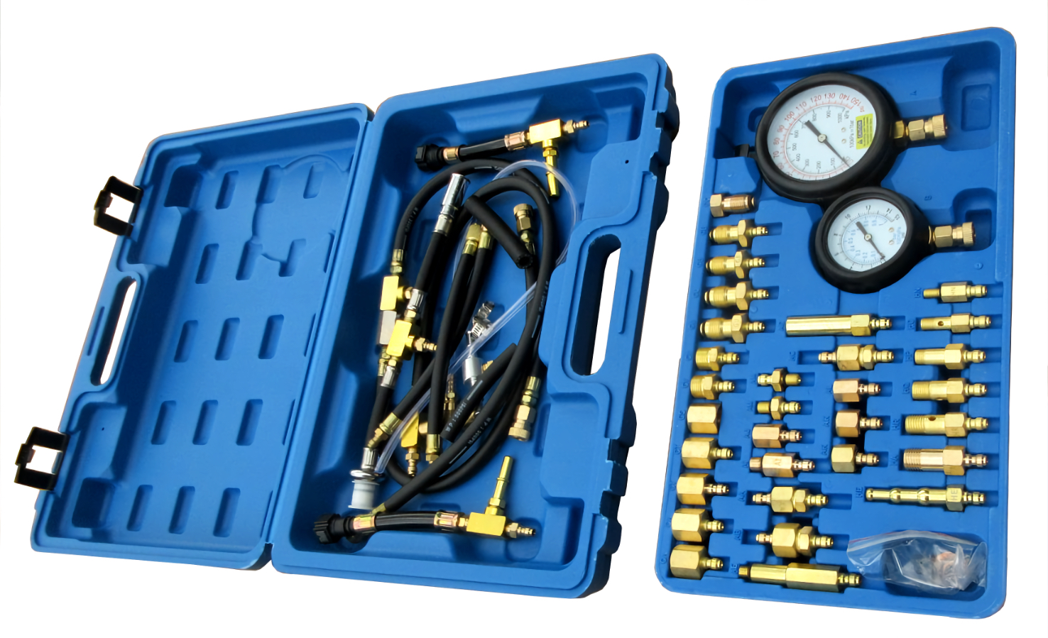 Комплект приспособлений для измерения давления топлива в магистралях большинства существующих марок и моделей автомобилей.