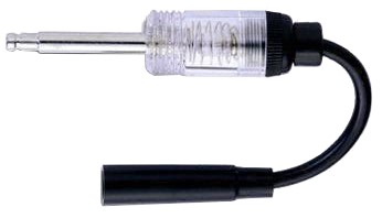 KA-2478 линейный тестер искрообразования Применяется для выявления отсутствия искры в системе зажигания. Методика проверки: Снимите высоковольтный провод свечи зажигания при выключенном двигателе. Наденьте черный разъем тестера на свечу зажигания. Вставьте металлический наконечник тестера в разъем высоковольтного провода. Попробуйте запустить двигатель. Если цепь зажигания замкнута, то сигнальная лампа будет мигать. Вспышка видна при ярком солнечном свете. Исключает риск возгорания в отличии от открытого способа диагностики искрообразования.