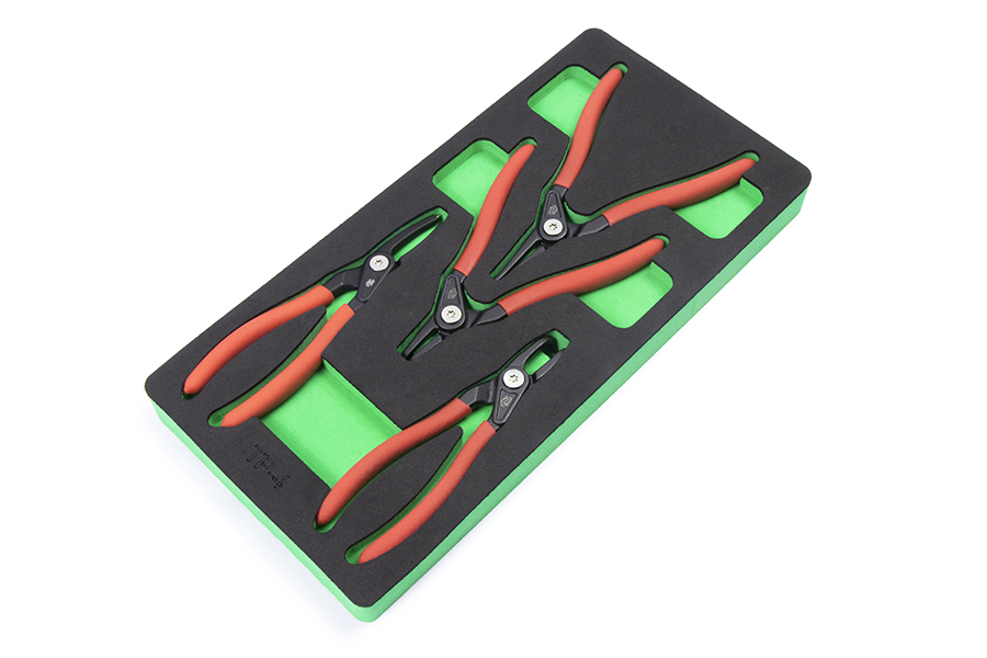 Съемники стопорных колец Станкоимпорт ложемент TP-4 помещены в удобный ложемент, который изготовлен из EVA (этилен винил ацетат) пены. Данный материал обладает высокой стойкостью к агрессивным средам и механическим воздействиям. Съемники имеют твердосплавные вставки, которые обеспечивают высокие показатели прочности, надежности удержания стопорного кольца и долгий срок службы. Наличие возвратной пружины скрытого типа облегчает позиционирование инструмента. Съемник изготовлен из высококачественной инструментальной кованной стали, защиту от коррозии обеспечивает оксидированное покрытие, эргономичная форма рукояток с защитой из устойчивых к растворителям материалов. Соответствуют требованиям международного стандарта DIN 5254, DIN 525.