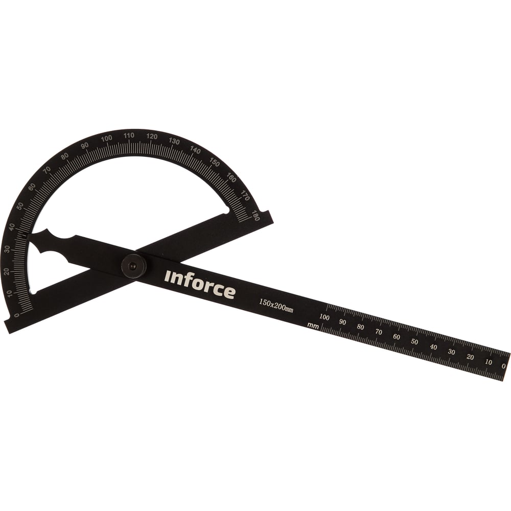 Транспортир с линейкой 200 мм Inforce 06-11-64  удобен для откладывания прямых линий в любом направлении по плоскости детали. Прочный профиль препятствует изгибанию инструмента, что позволяет сохранить высокую точность измерений.