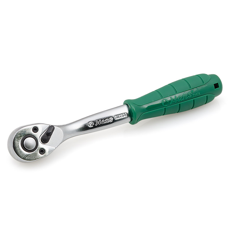Трещотка 3/8" с быстрым сбросом Серия 162GQ имеет трещоточный 72-зубцовый механизм с флажковым переключателем и изогнутой металлической ручкой, обеспечивающей удобство работы в ограниченном пространстве, c надежно насаженной рукояткой из твердого пластика, что позволяет не проскальзывать рукоятке во время работы, также имеется кнопка быстрого сброса для быстрой замены инструмента при необходимости. Имеет малый большой 5° обратный ход, преимуществами можно считать устойчивость к загрязнениям и простотой обслуживания. Применяются при производстве работ со слабонагруженными резьбовыми соединениями. Не имеют альтернативы (за исключением трещоточных ключей) при использовании в ограниченных рабочих пространствах.