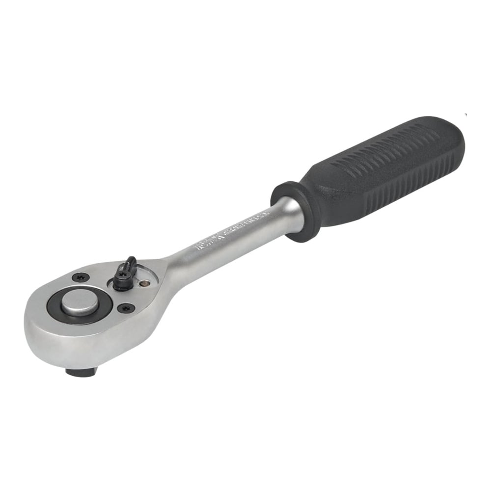 Трещотка TOPEX 1/4 38D502 применяется для работ с крепежом. Она оснащена храповым механизмом с 24 зубцами и реверсом, позволяющим изменять направление вращения. Рабочая часть трещотки выполнена из хромованадиевой стали в соответствии с DIN 3122, что обеспечивает прочность и долгий срок службы. Рукоятка не скользит в руке и позволяет работать с комфортом.
